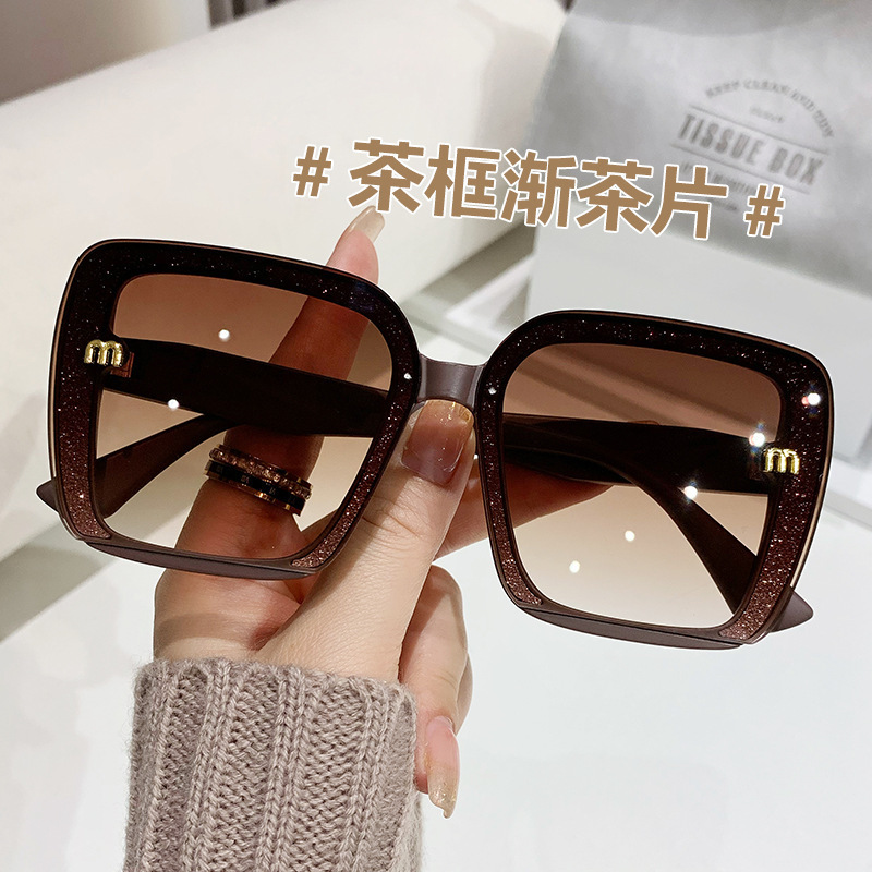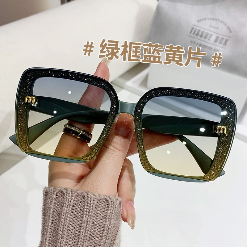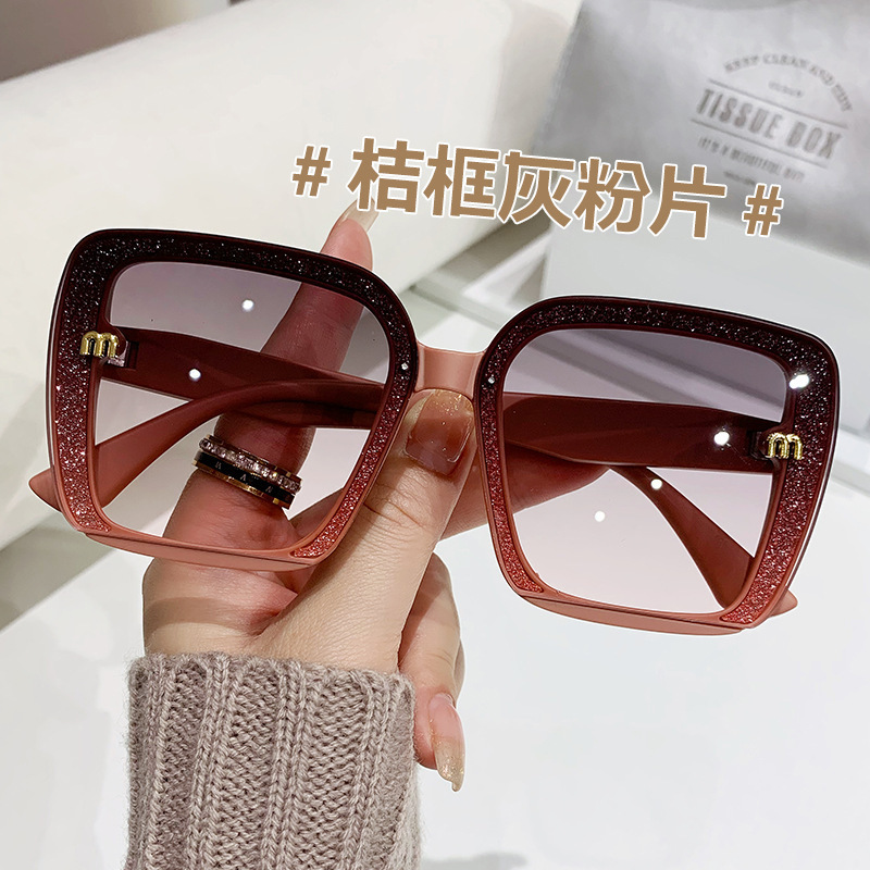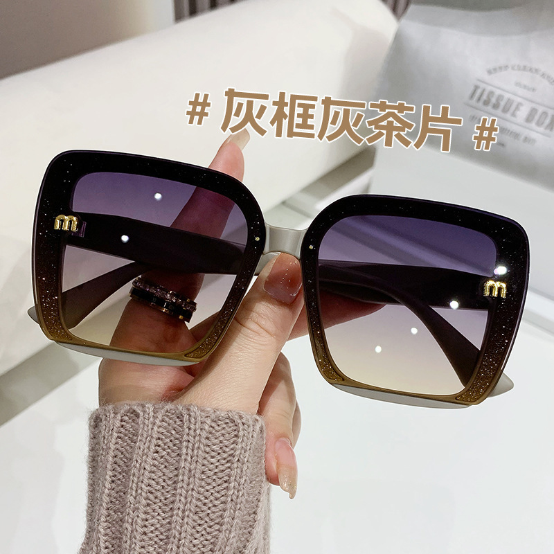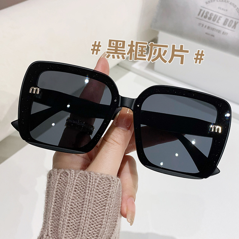 새로운 선글라스 대형 프레임 무테 선글라스 큰 얼굴 슬리밍 자외선 차단 선글라스 여성의 세련된 안경스토어 가기