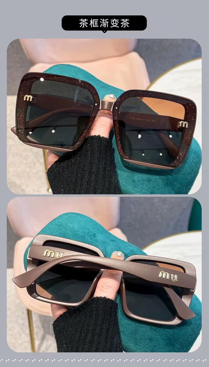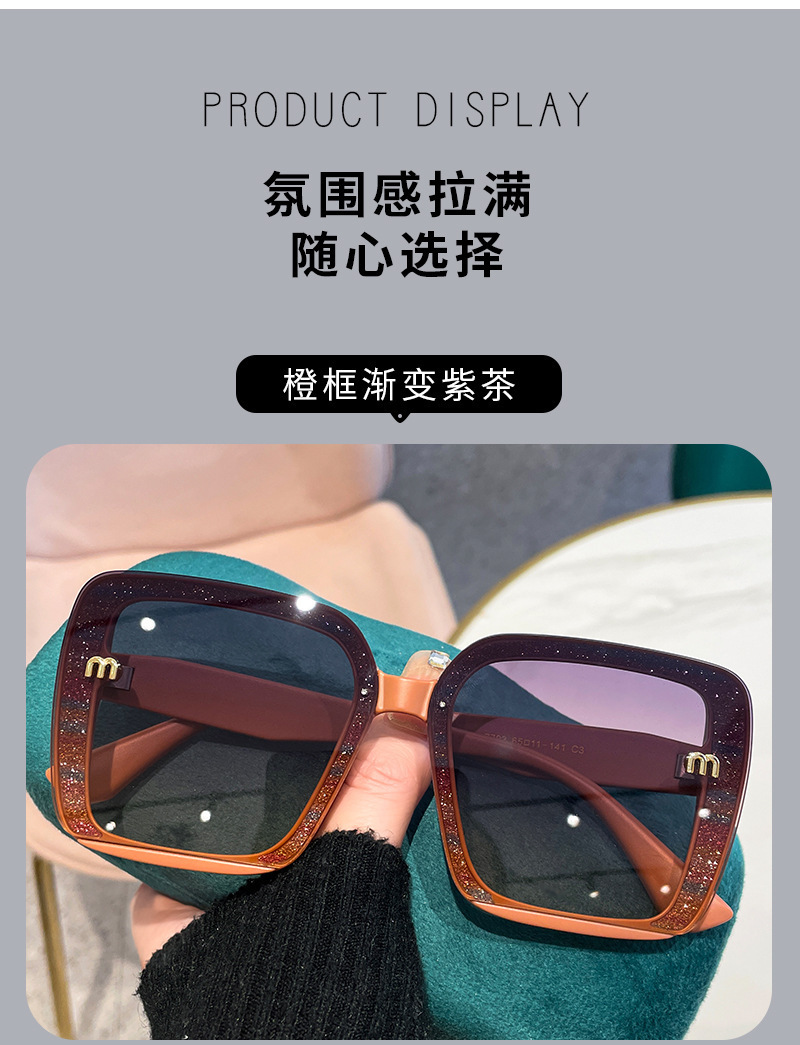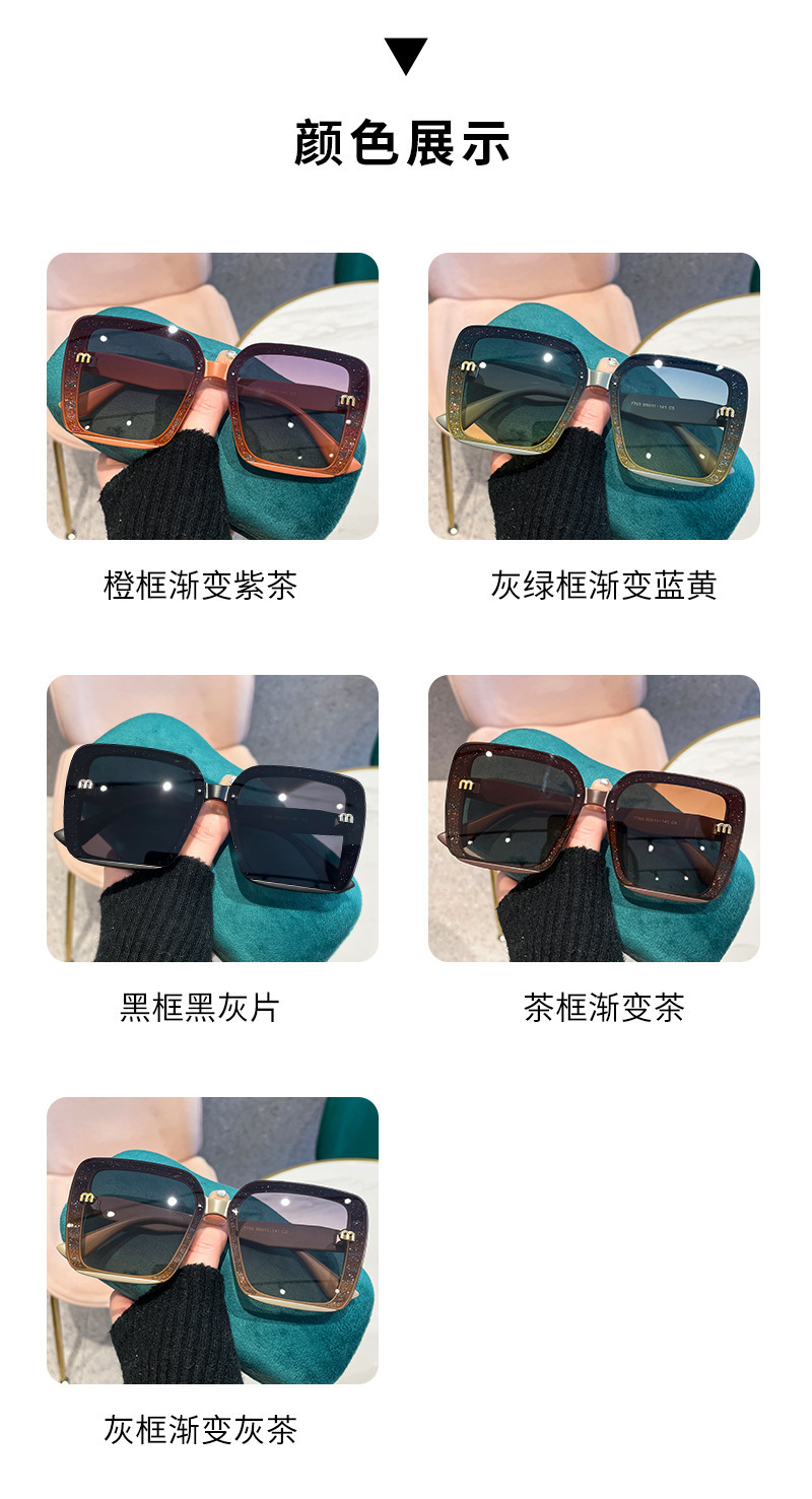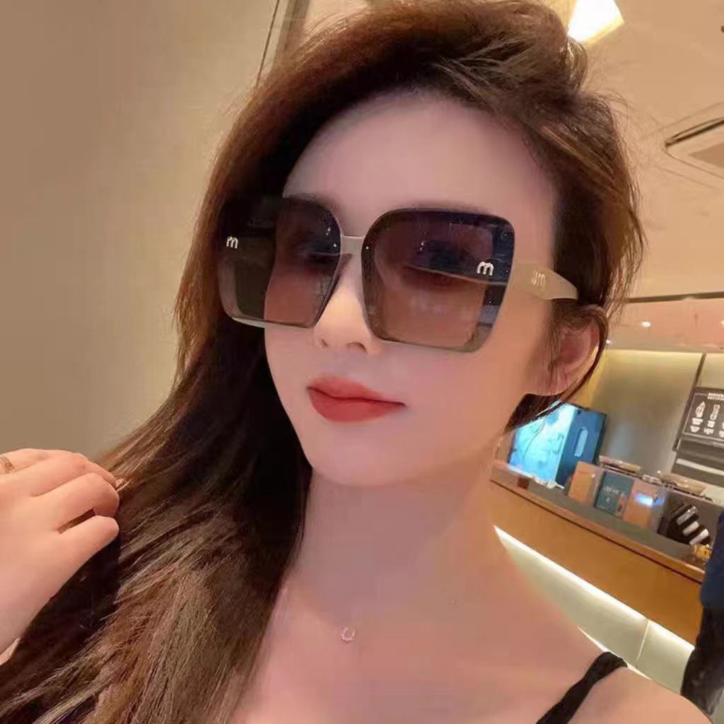 새로운 선글라스 대형 프레임 무테 선글라스 큰 얼굴 슬리밍 자외선 차단 선글라스 여성의 세련된 안경스토어 가기
