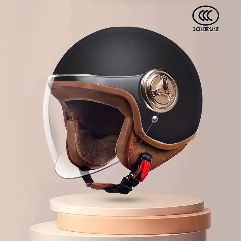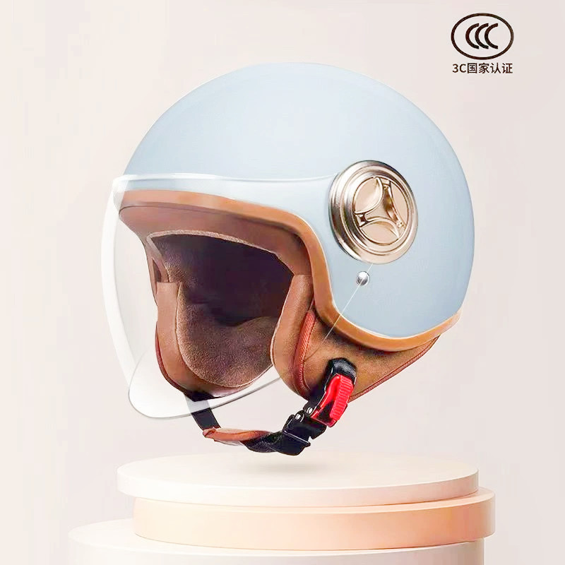 새로운 국가 표준 3C 하프 헬멧 배터리 전기 자동차 헬멧 남여 할리 헤드 그레이 세련된 탈착식 귀 보호 가을, 겨울 모자
