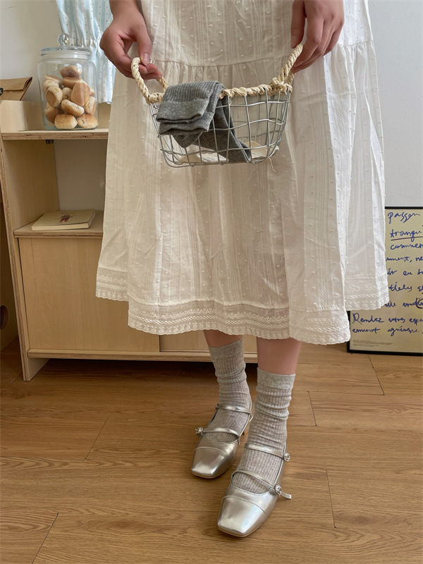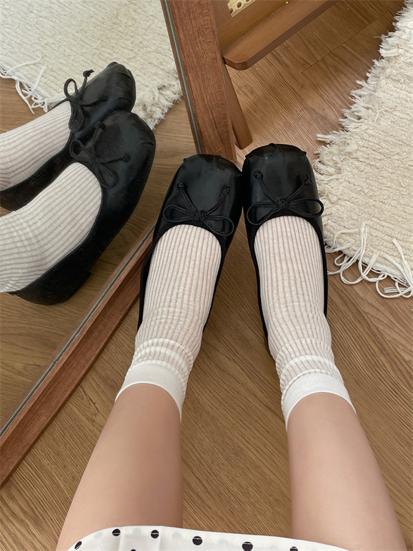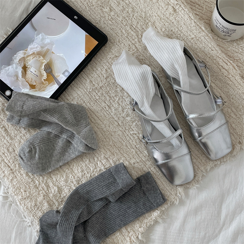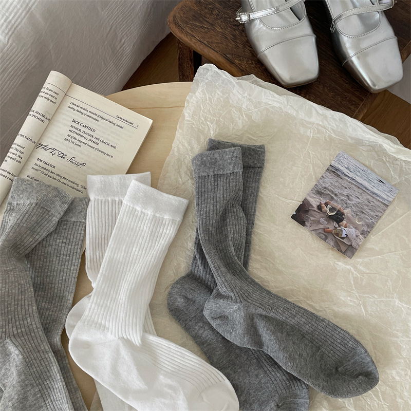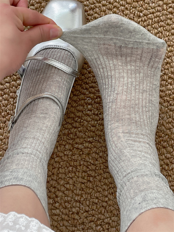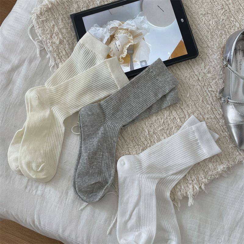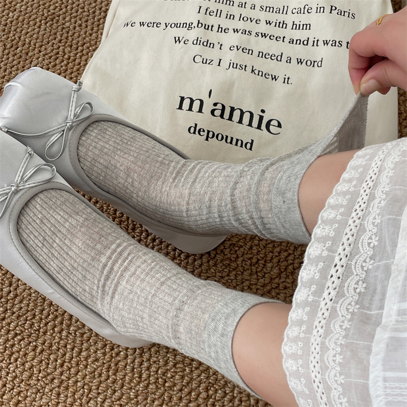 미우 본리스 스택 양말 봄과 여름 발레 스타일 얇은 여성 양말 미드 튜브 양말 슬리밍 한국 스타일 Ins 스타일 솔리드 컬러 양말스토어 가기