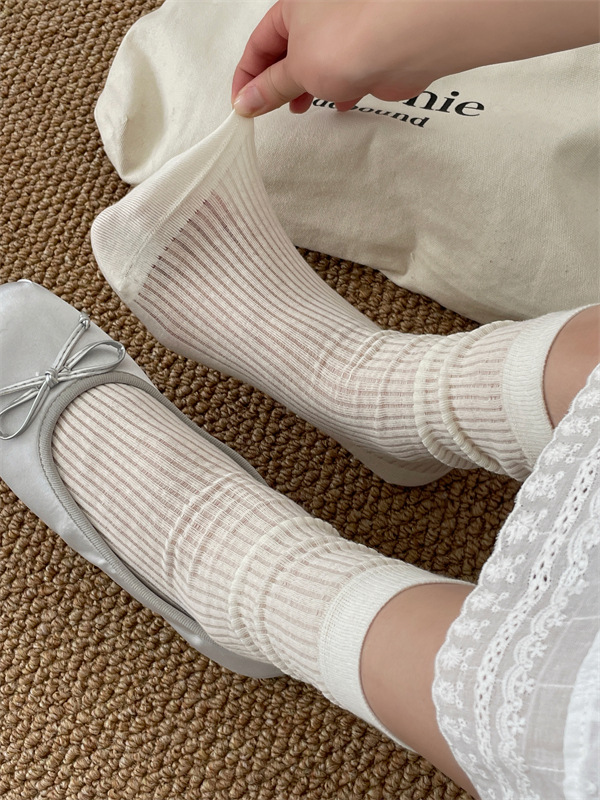 미우 본리스 스택 양말 봄과 여름 발레 스타일 얇은 여성 양말 미드 튜브 양말 슬리밍 한국 스타일 Ins 스타일 솔리드 컬러 양말