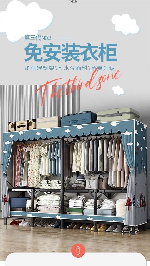 설치-무료 접히는 간단한 천 옷장 홈 침실 임대 방 옷장 견고하고 튼튼한 보관 캐비닛 두껍고 굵게