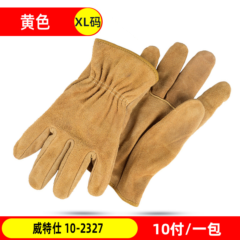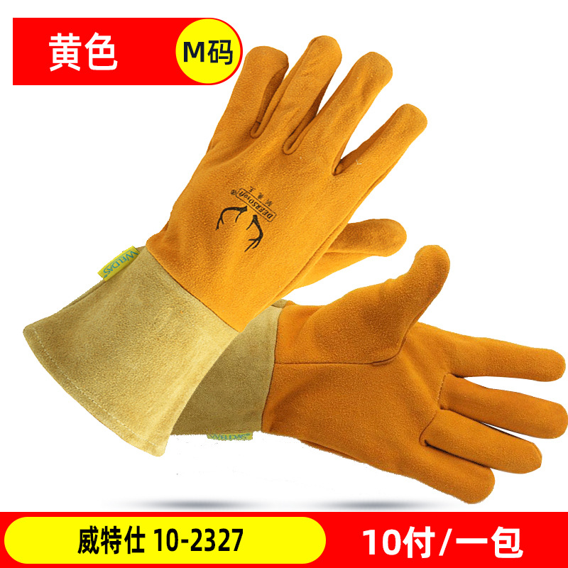 • 노란색 전기 소가죽 용접 장갑 (검은 안감)