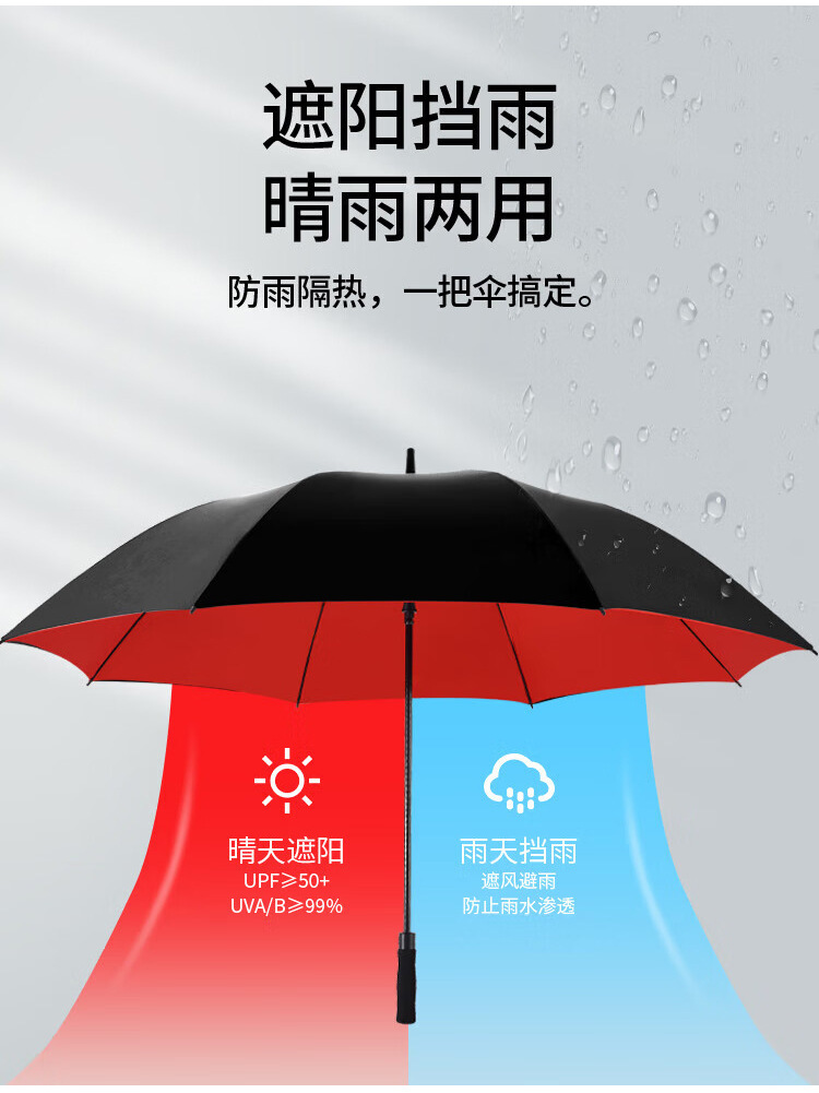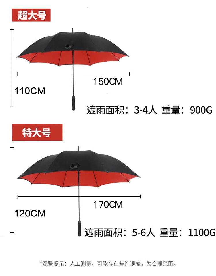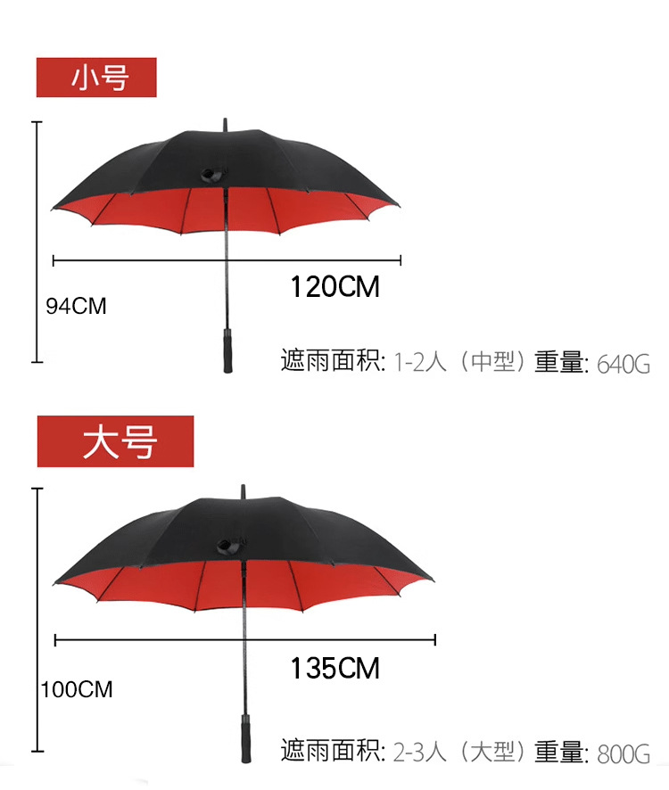 • 더블 레이어 외부 블랙 내부 레드-자동 방풍 우산