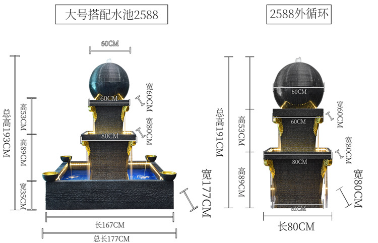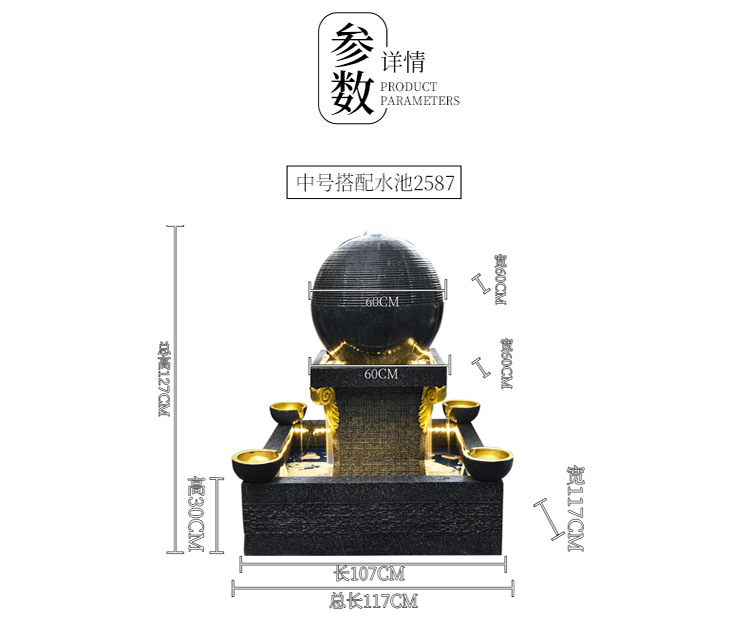 유럽식 원형 물 분수 장식품 가정용 장식품 순환수 경관 장식 사무실 행운을 부르는 바닥 장식스토어 가기