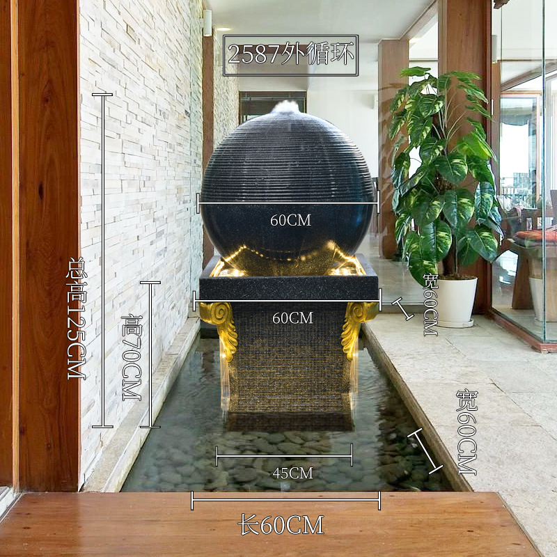 유럽식 원형 물 분수 장식품 가정용 장식품 순환수 경관 장식 사무실 행운을 부르는 바닥 장식