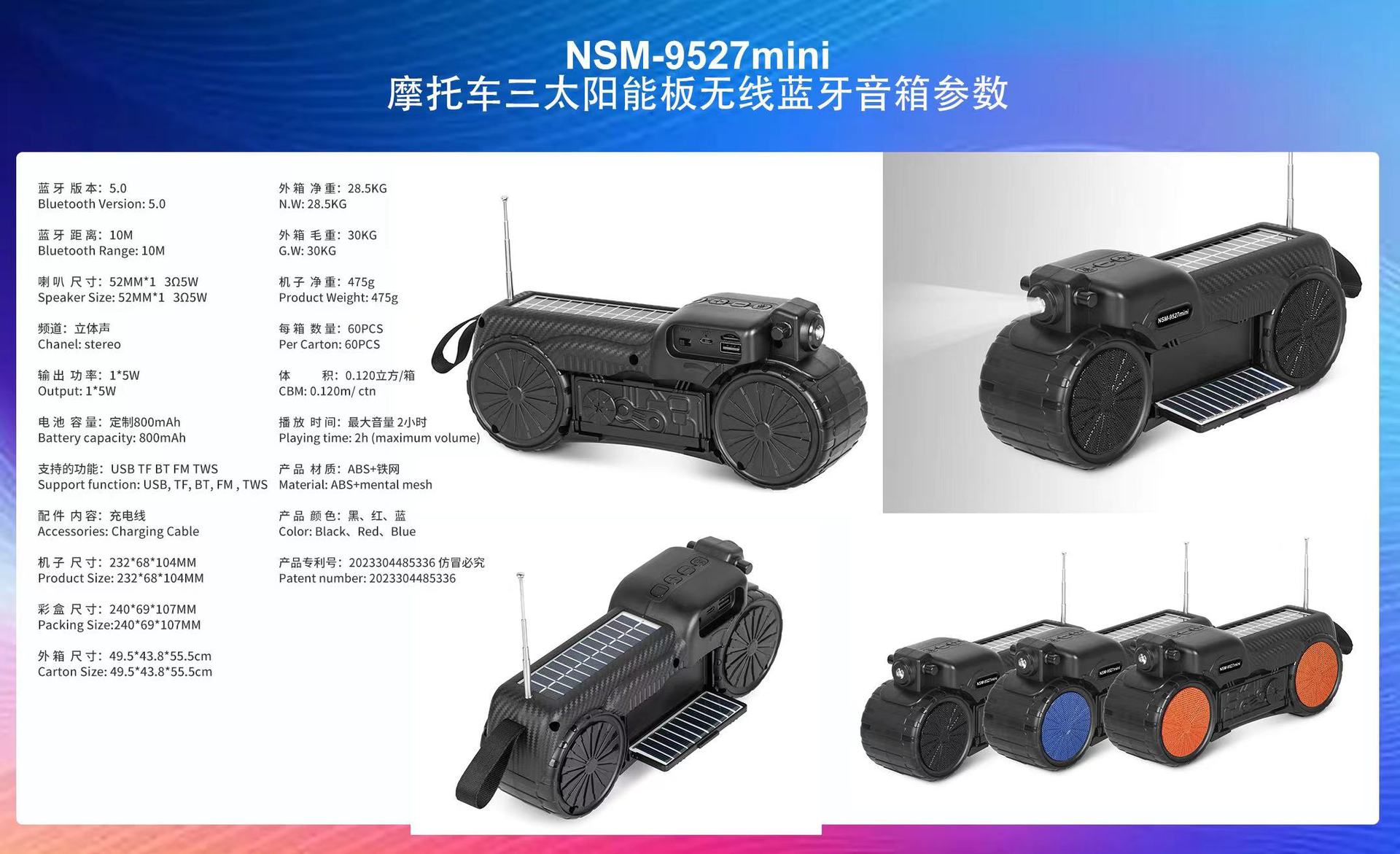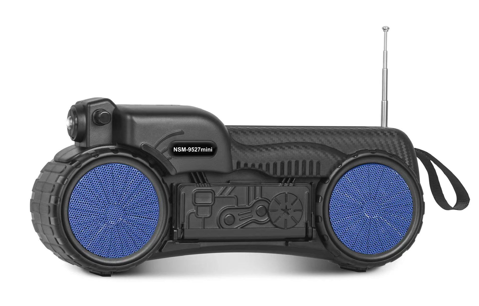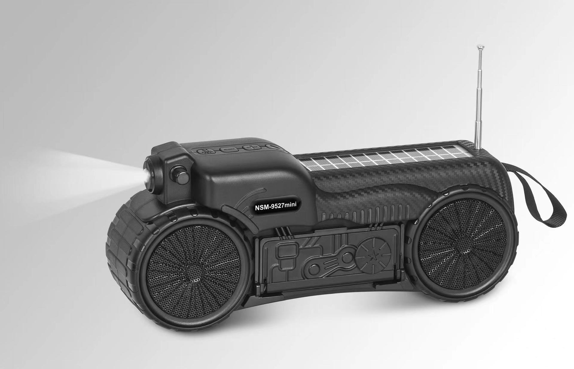 NSM-9527 새로운 오토바이 스타일 블루투스 스피커 미니 카드 야외 태양 전지 패널 충전 안테나 라디오