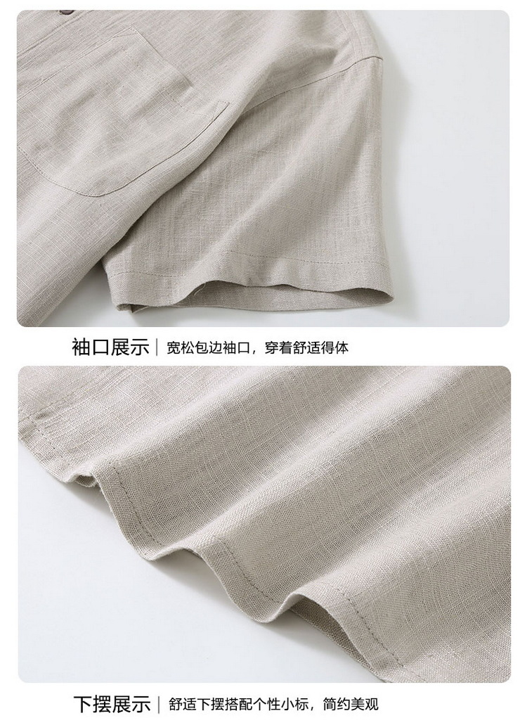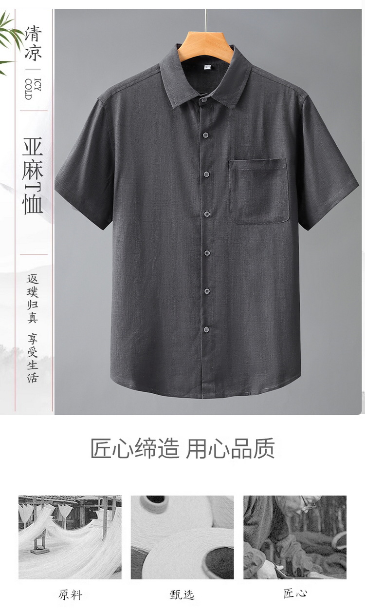 여름 중년 · 노인 남성 리넨 셔츠 아빠 반팔 면 · 리넨 셔츠 70 세 할아버지 플러스 사이즈 반소매 카디건스토어 가기