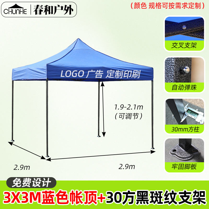 • 3* 3m 검은 줄무늬 파란색 상단 텐트