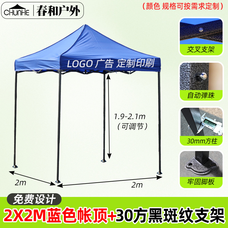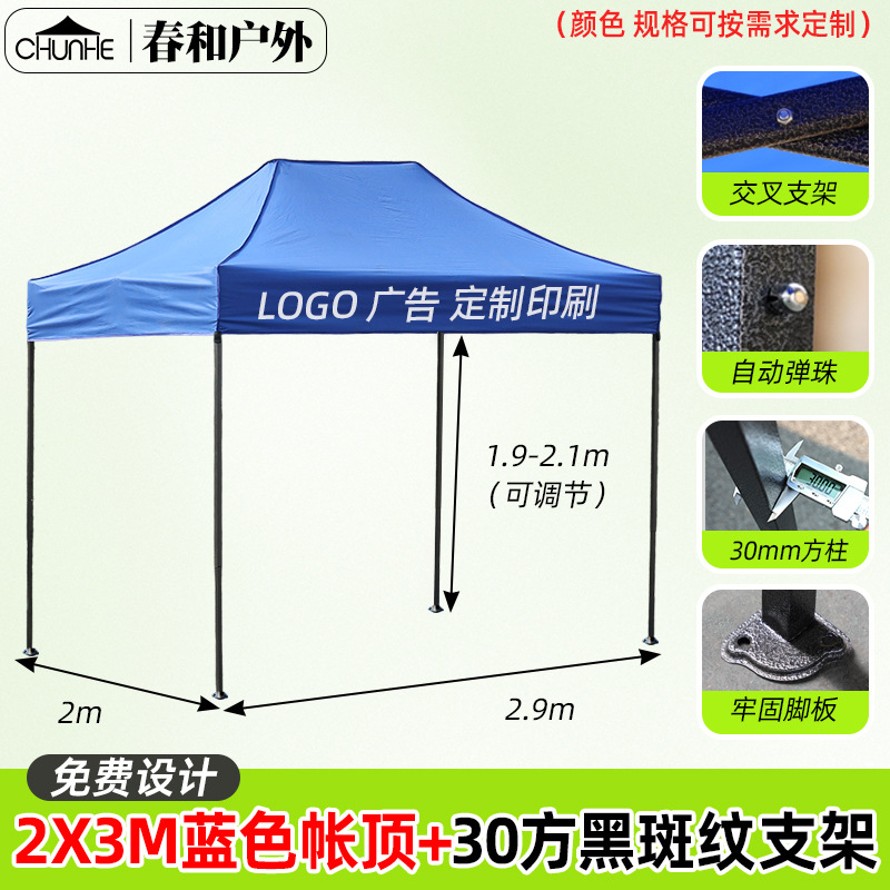 • 2* 2m 검은 줄무늬 파란색 상단 텐트