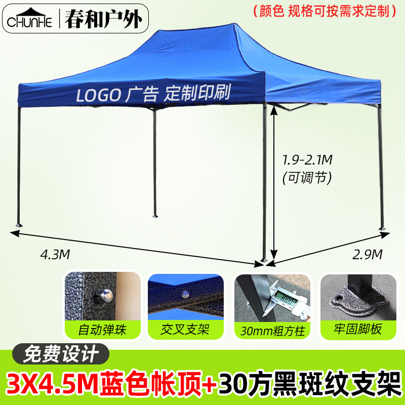 • 3* 4.5m 검은 줄무늬 파란색 상단 텐트