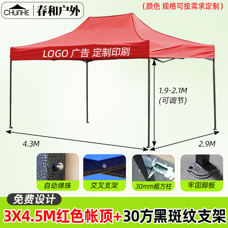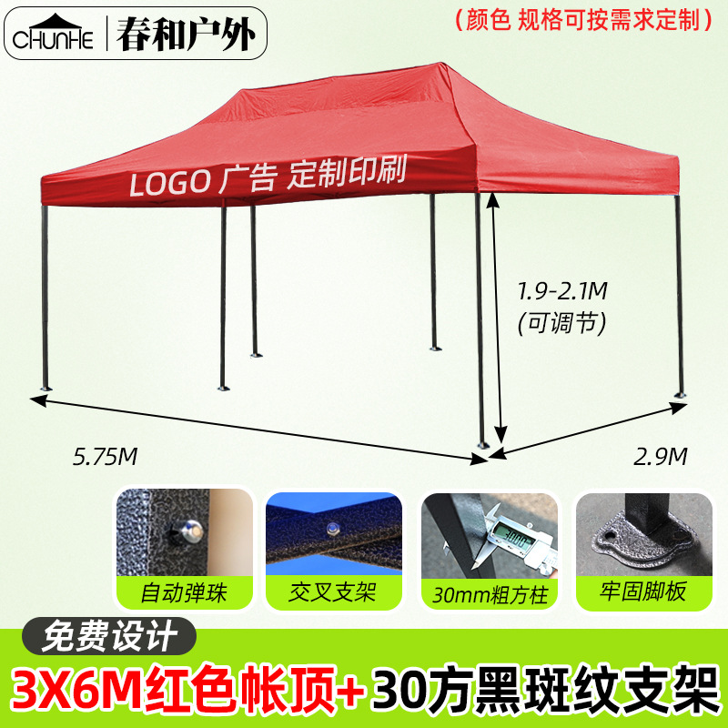 • 3* 4.5m 검은 줄무늬 빨간색 상단 텐트