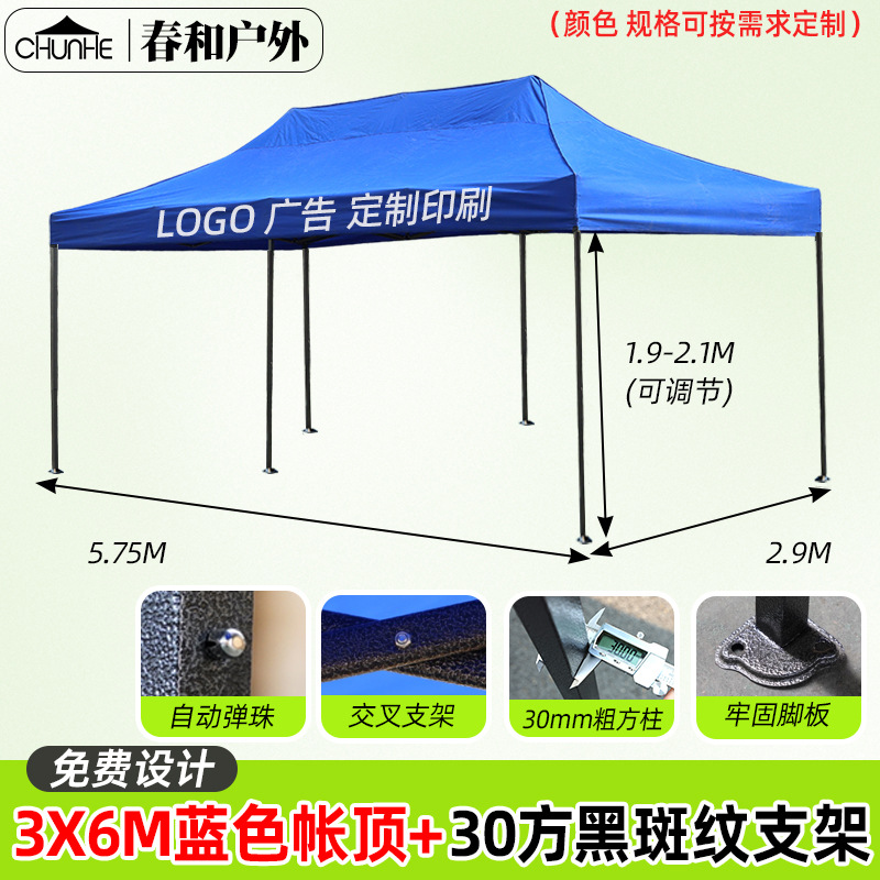 • 3* 6m 검은 줄무늬 파란색 상단 텐트