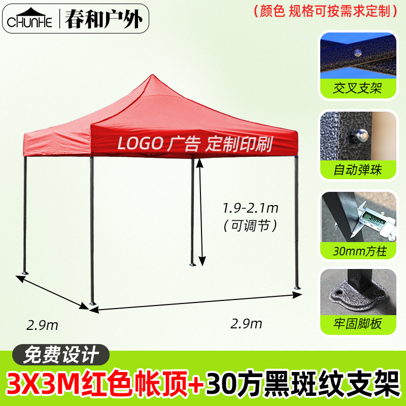 • 3* 3m 검은 줄무늬 빨간색 상단 텐트