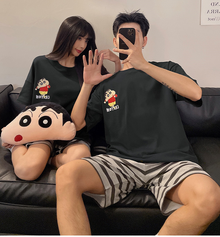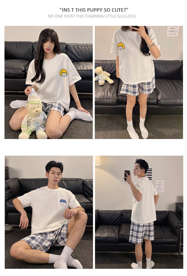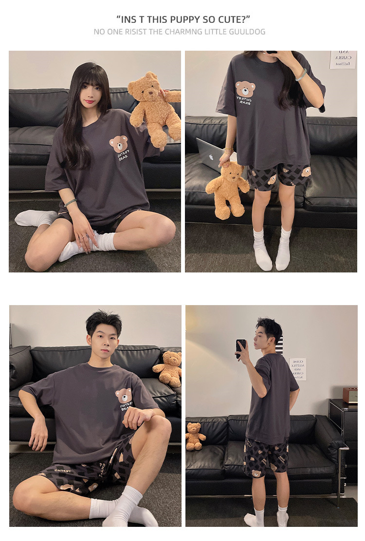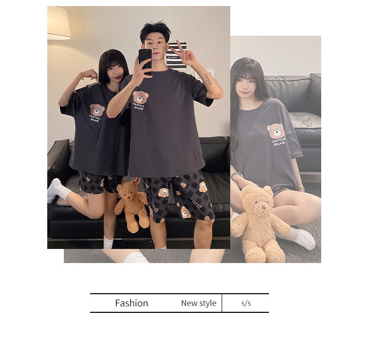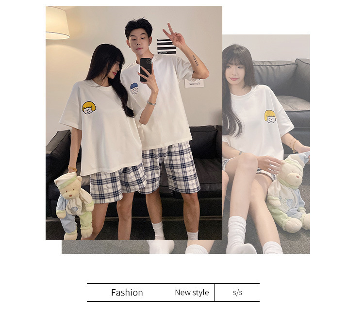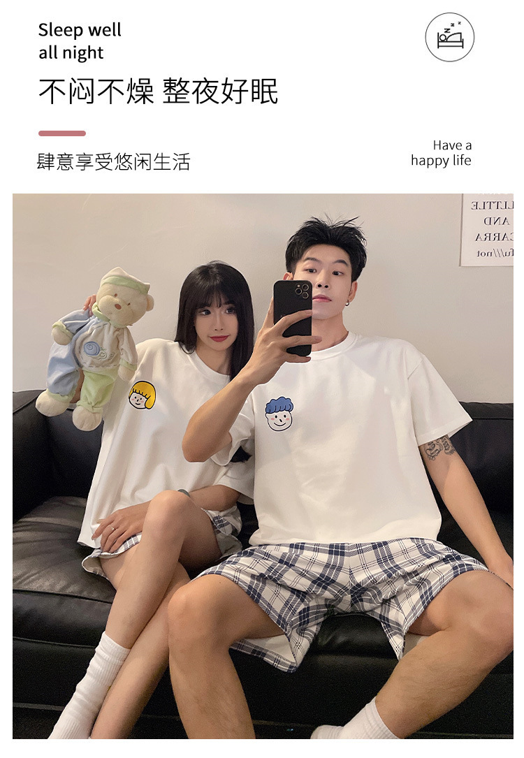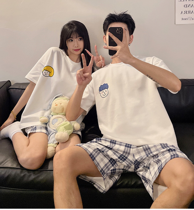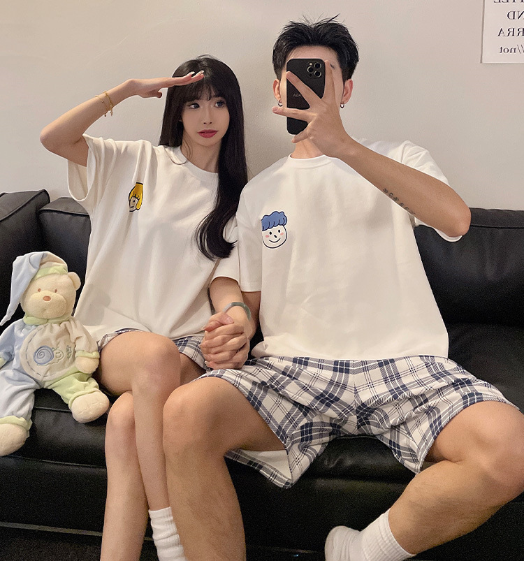 여름 커플 잠옷 면 반팔 반바지 얇은 만화 귀여운 한 남자와 한 여성 겉옷 느슨한 홈 옷스토어 가기