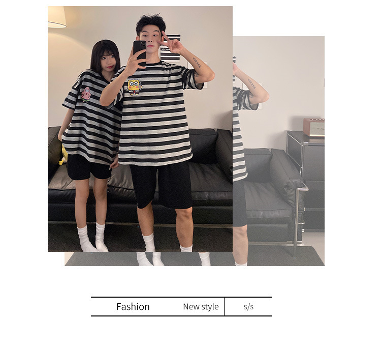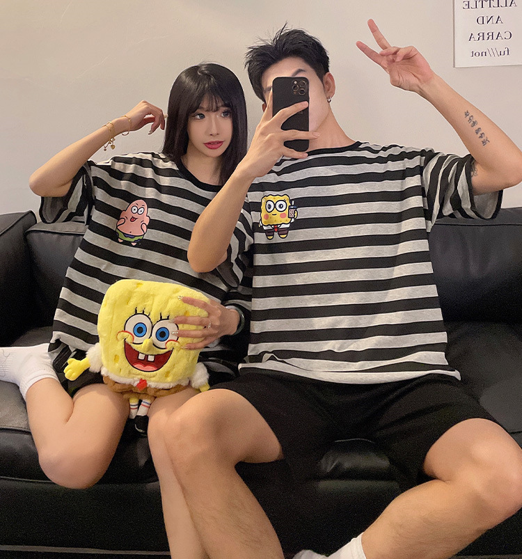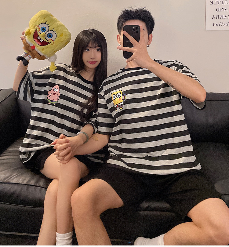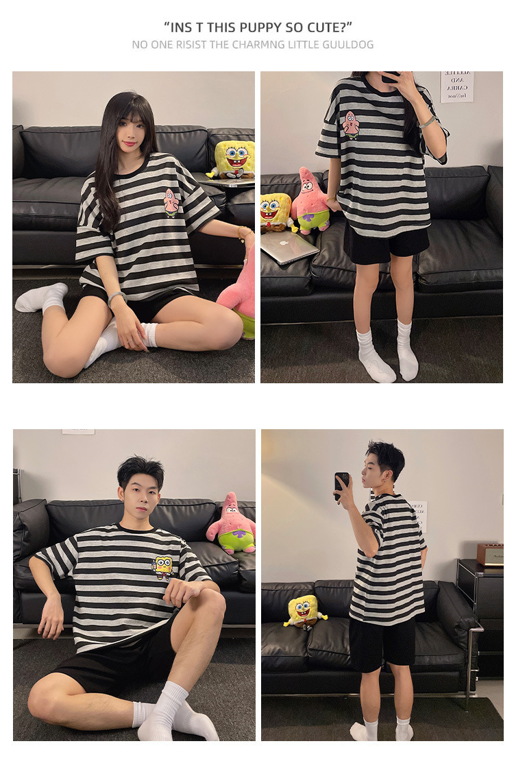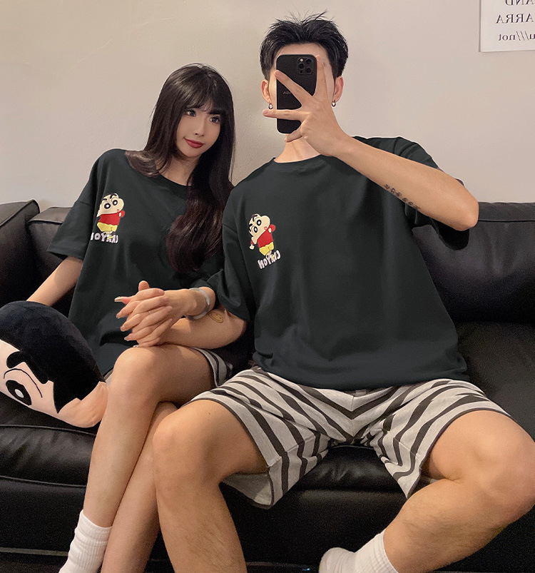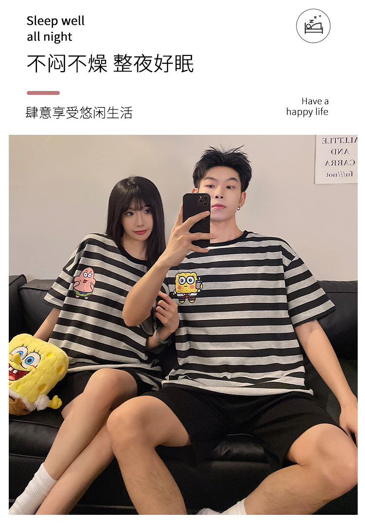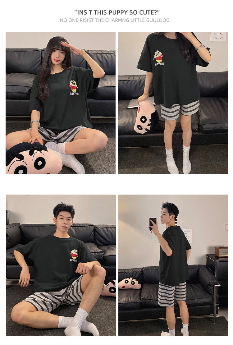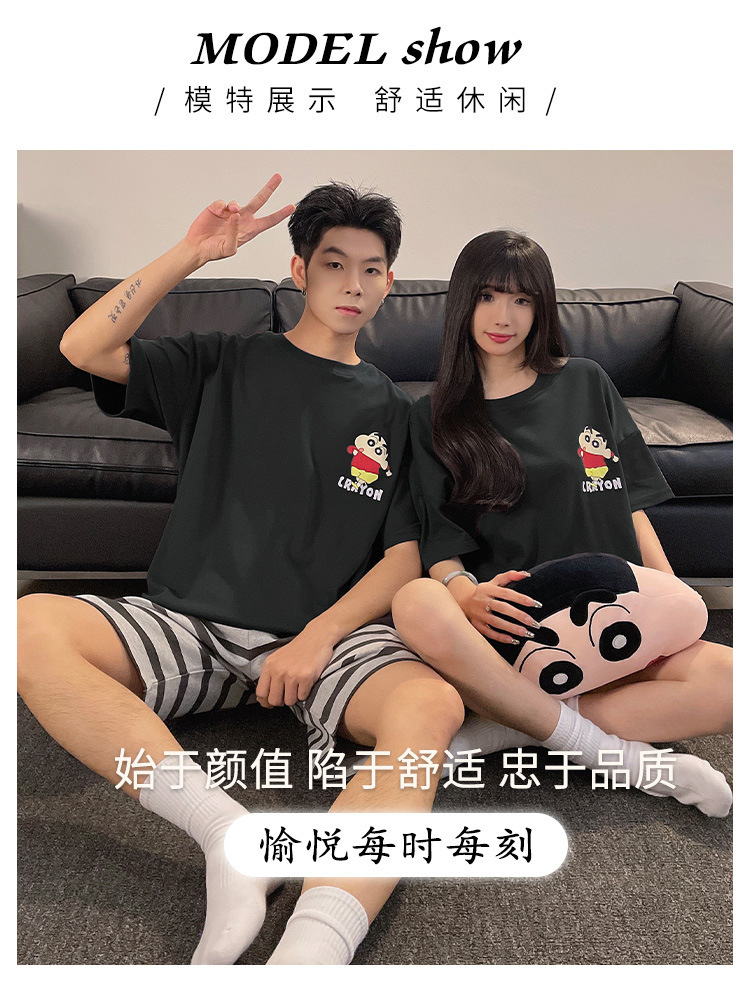 여름 커플 잠옷 면 반팔 반바지 얇은 만화 귀여운 한 남자와 한 여성 겉옷 느슨한 홈 옷스토어 가기