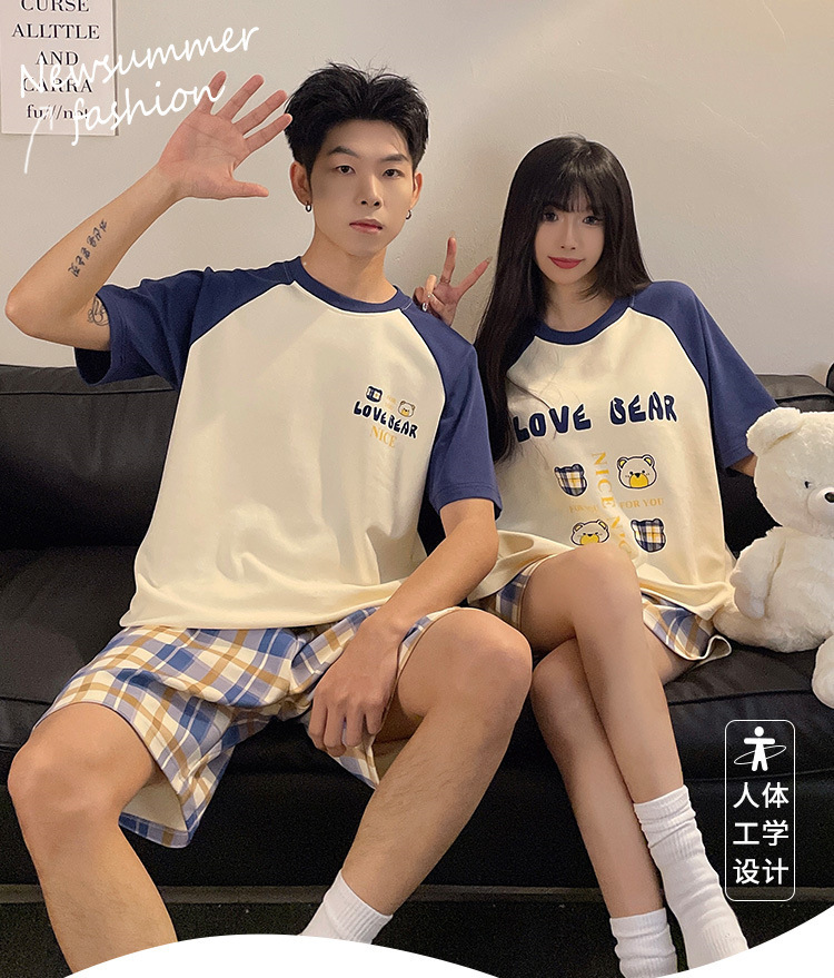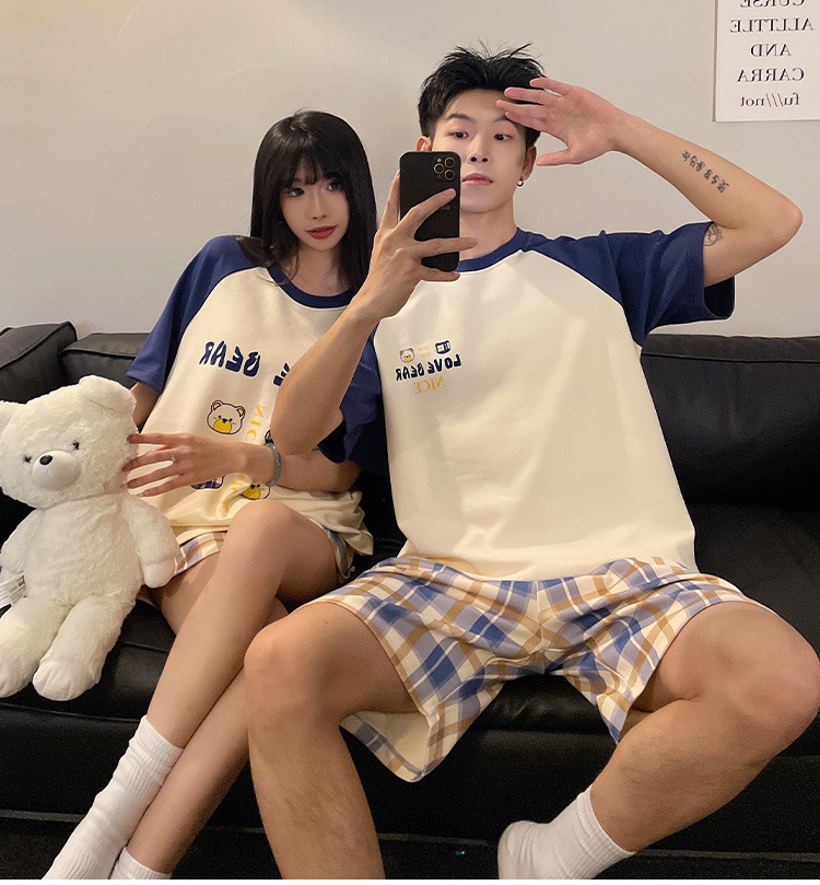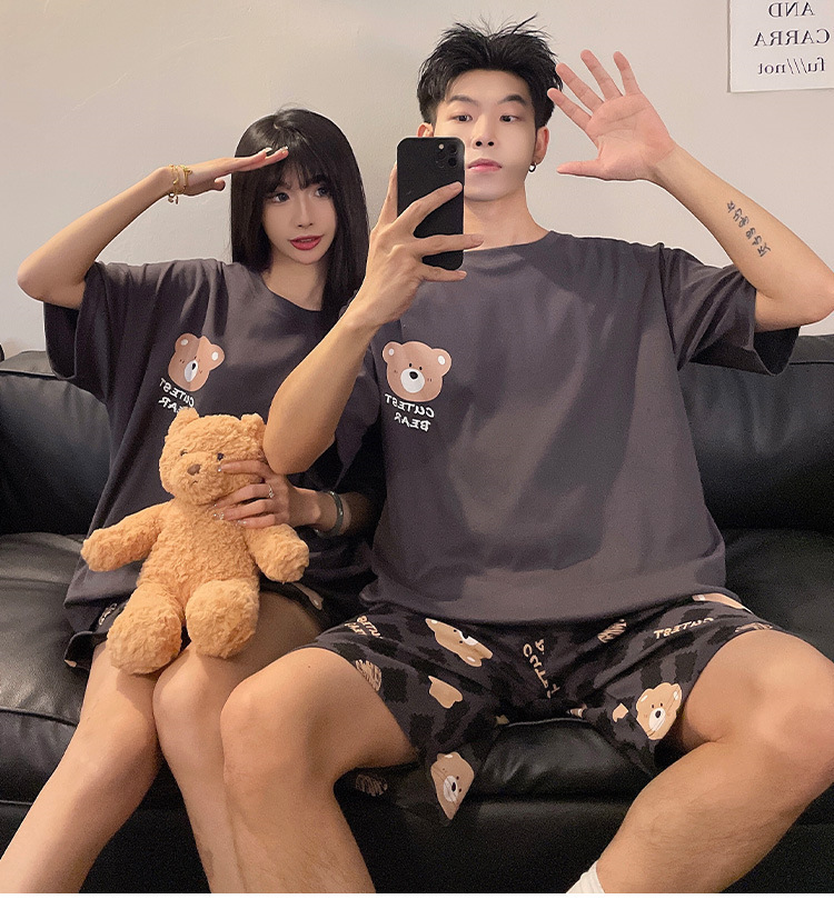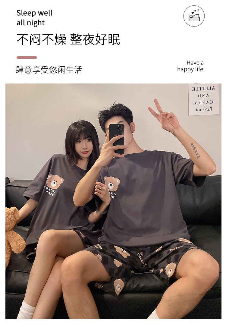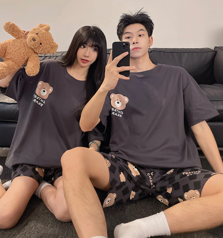 여름 커플 잠옷 면 반팔 반바지 얇은 만화 귀여운 한 남자와 한 여성 겉옷 느슨한 홈 옷