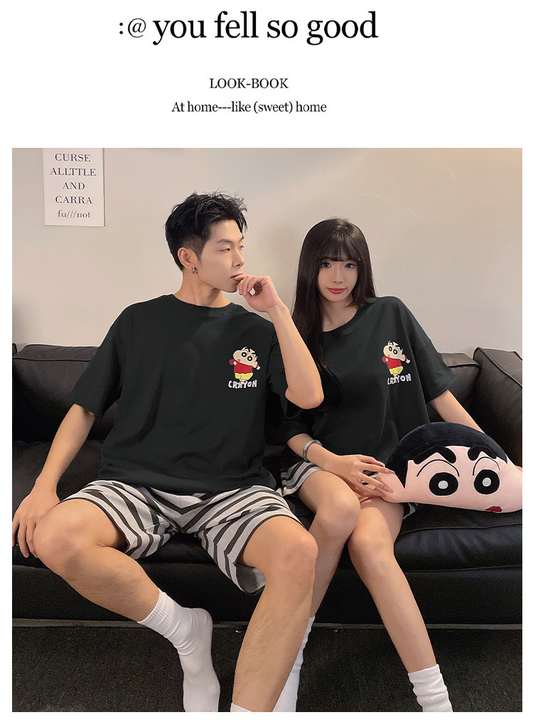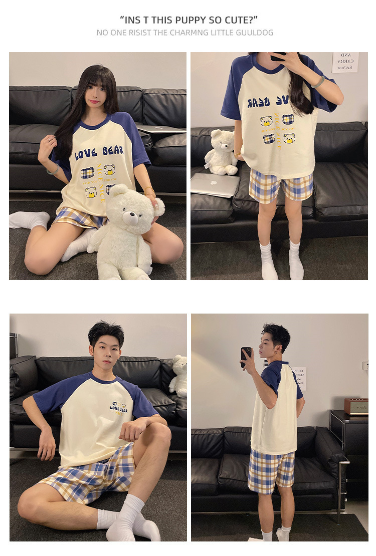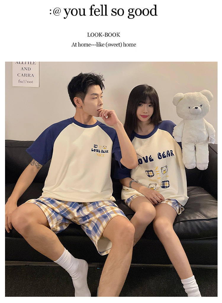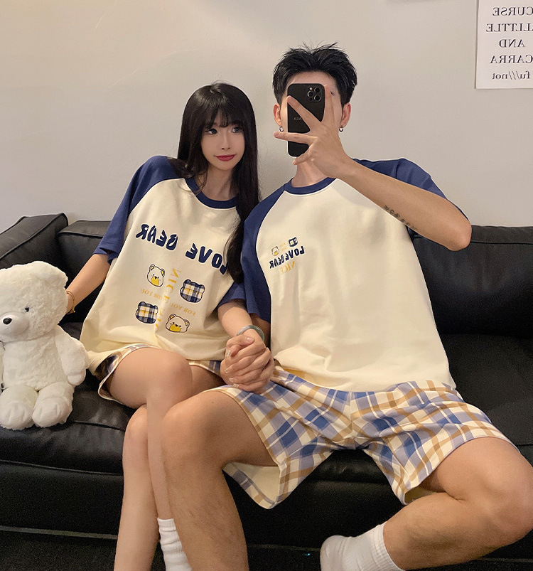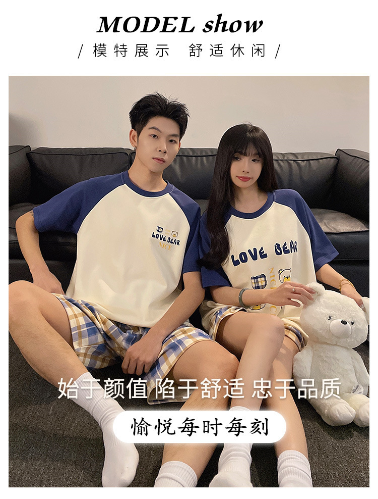 여름 커플 잠옷 면 반팔 반바지 얇은 만화 귀여운 한 남자와 한 여성 겉옷 느슨한 홈 옷