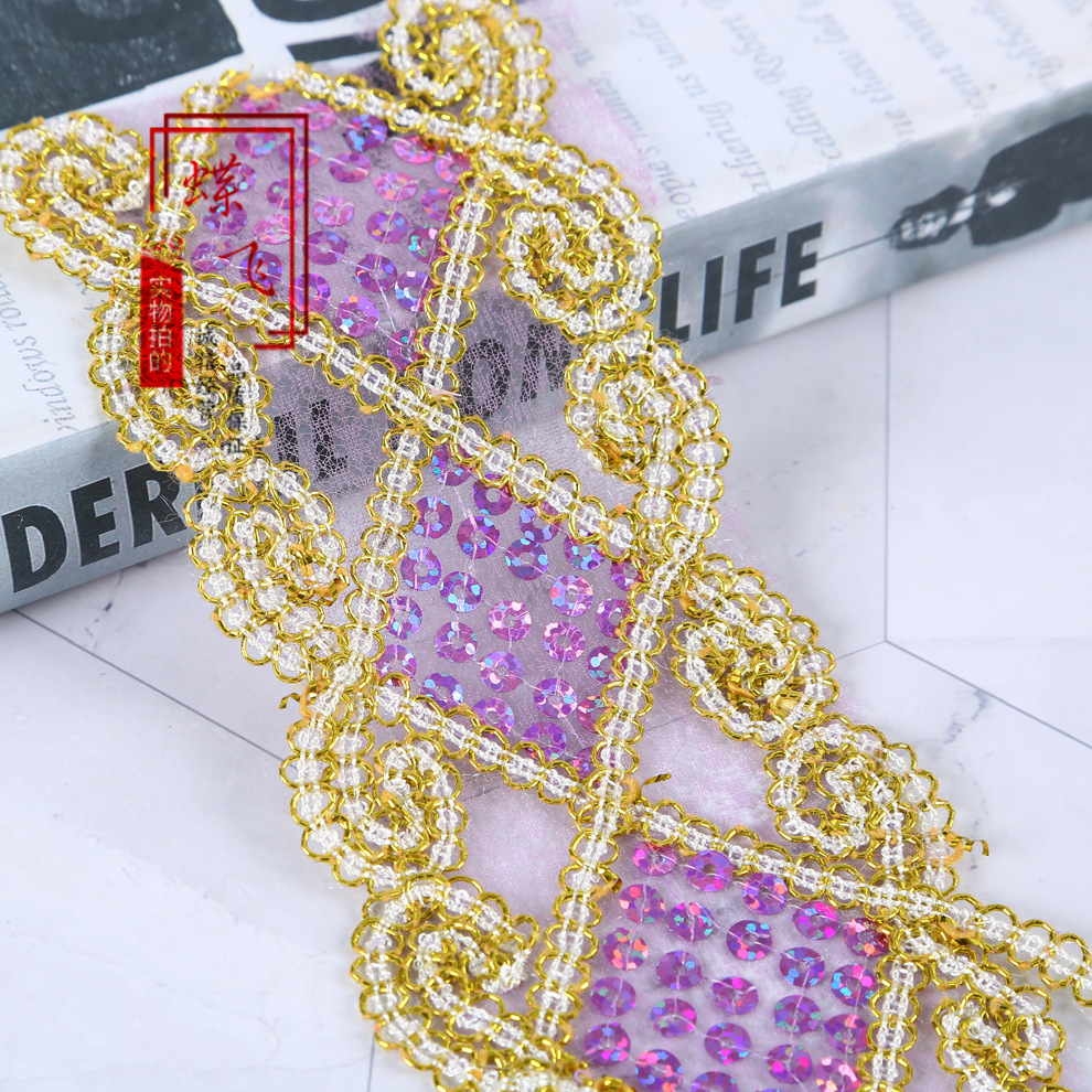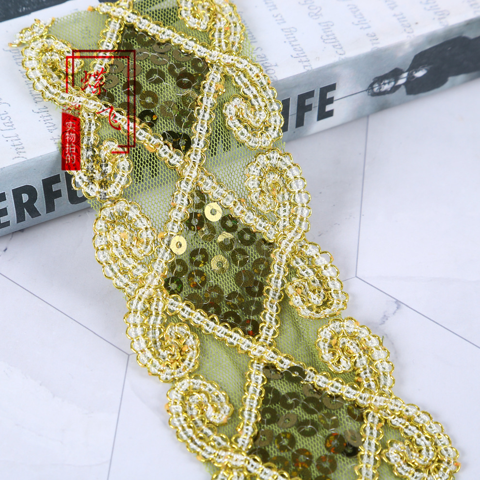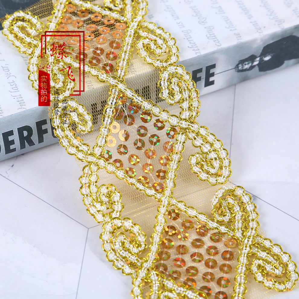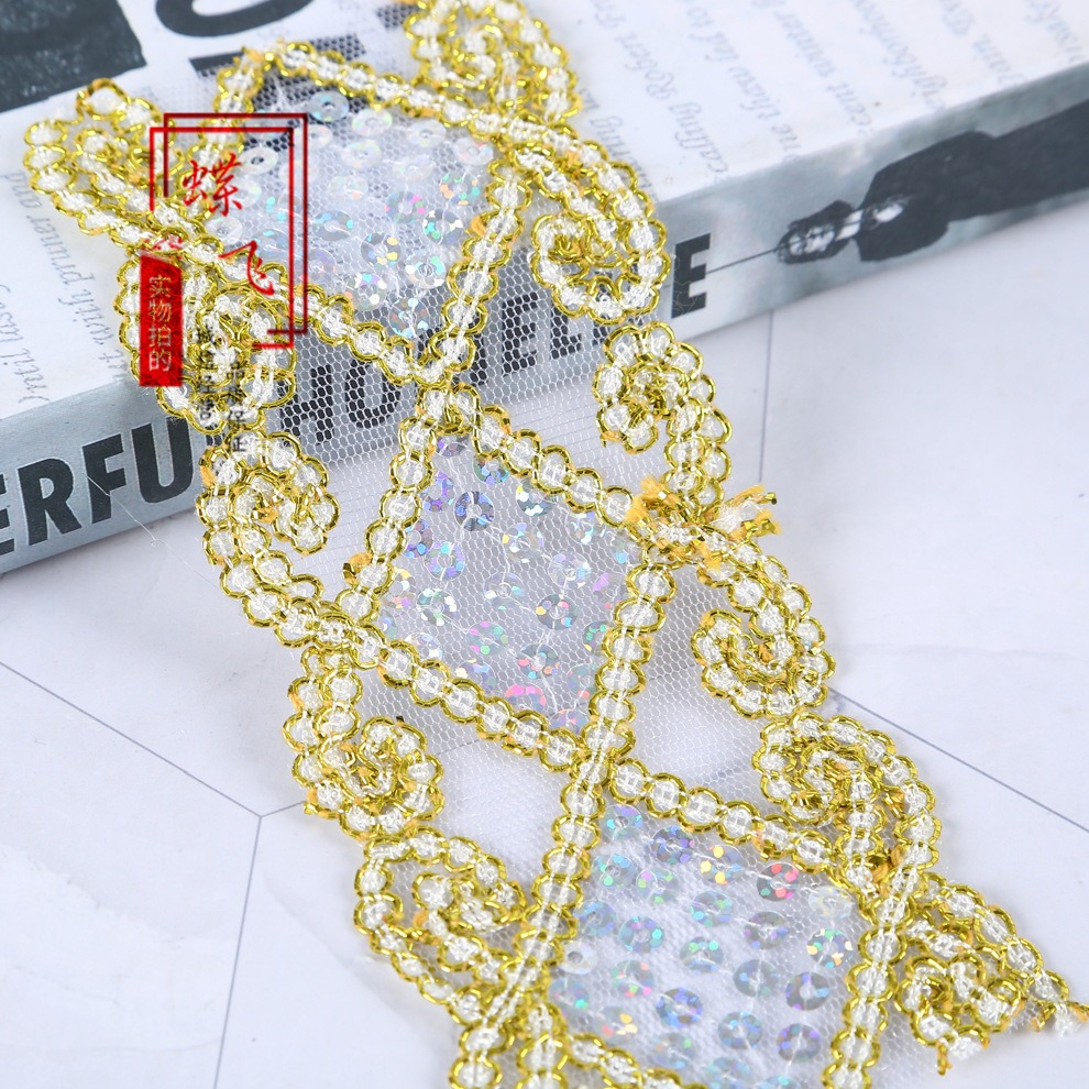6cm 마름모 레이저 금색과 은색 레이스 의류 액세서리 커튼 자수 레이스 컬러 메쉬 스팽글 레이스스토어 가기