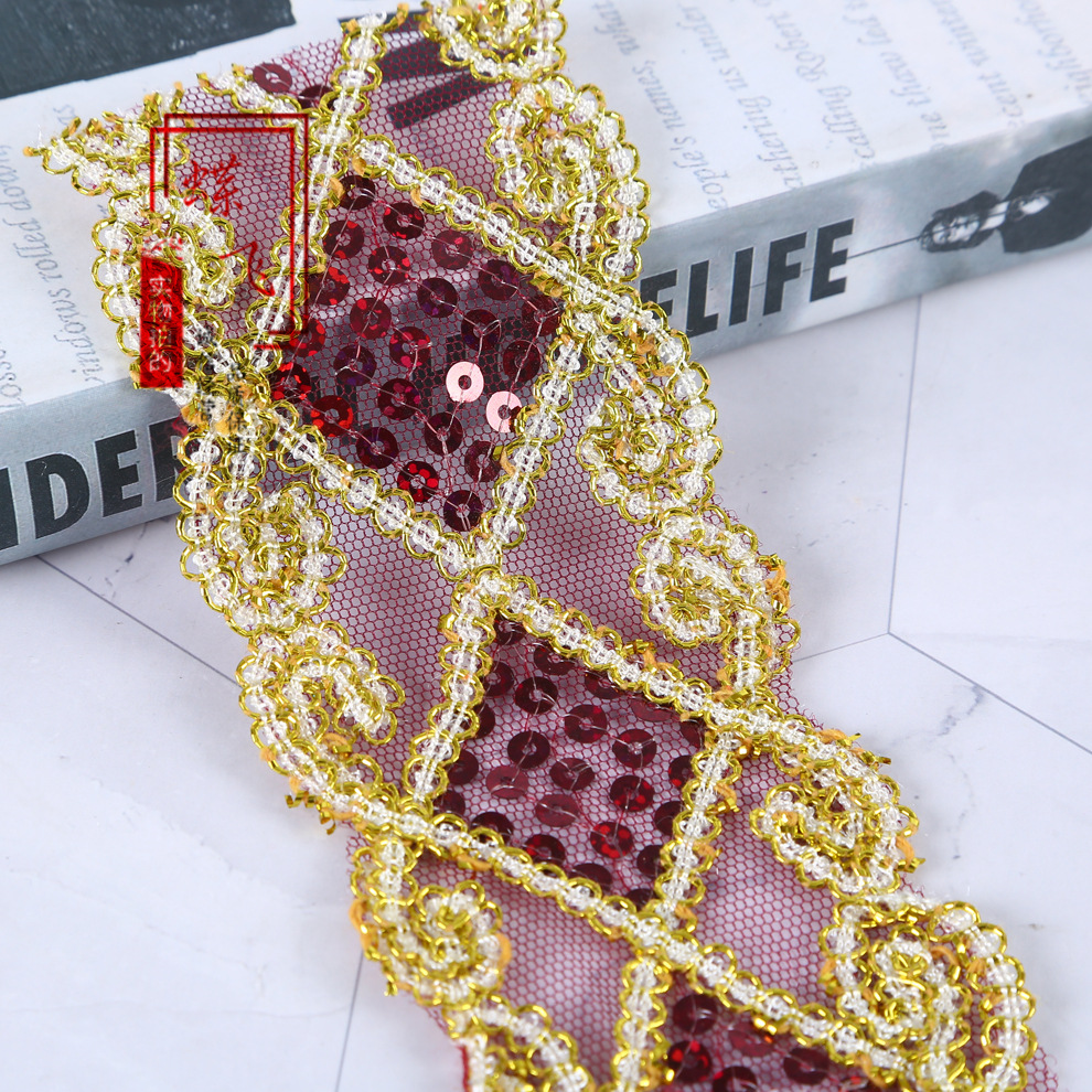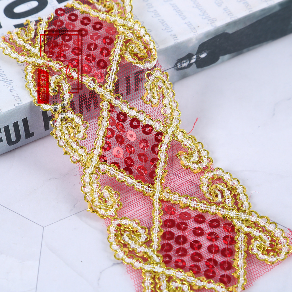 6cm 마름모 레이저 금색과 은색 레이스 의류 액세서리 커튼 자수 레이스 컬러 메쉬 스팽글 레이스