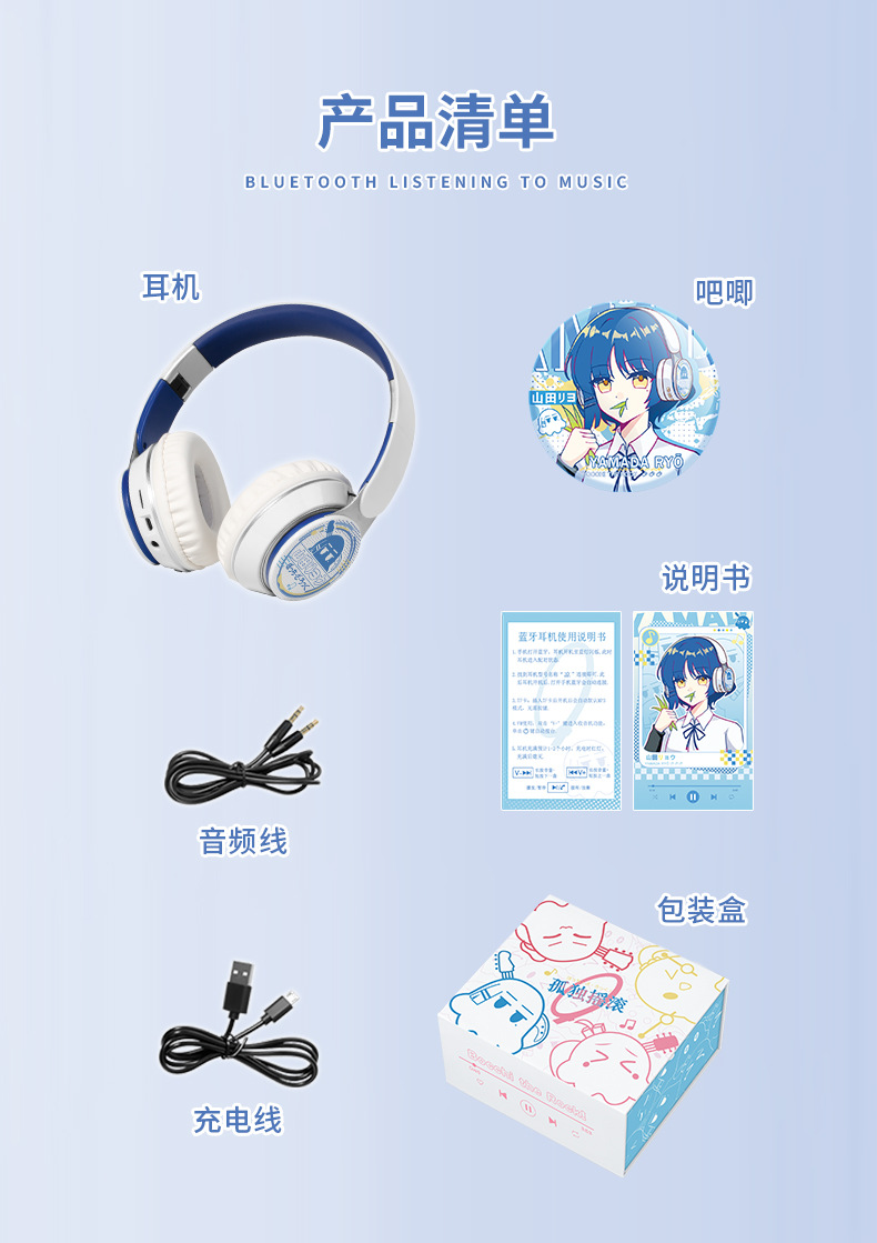 2 차원 야마다 멋진 외로운 록 애니메이션 주변 무선 블루투스 헤드셋스토어 가기
