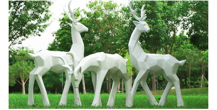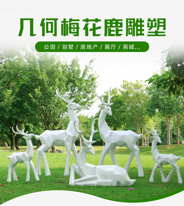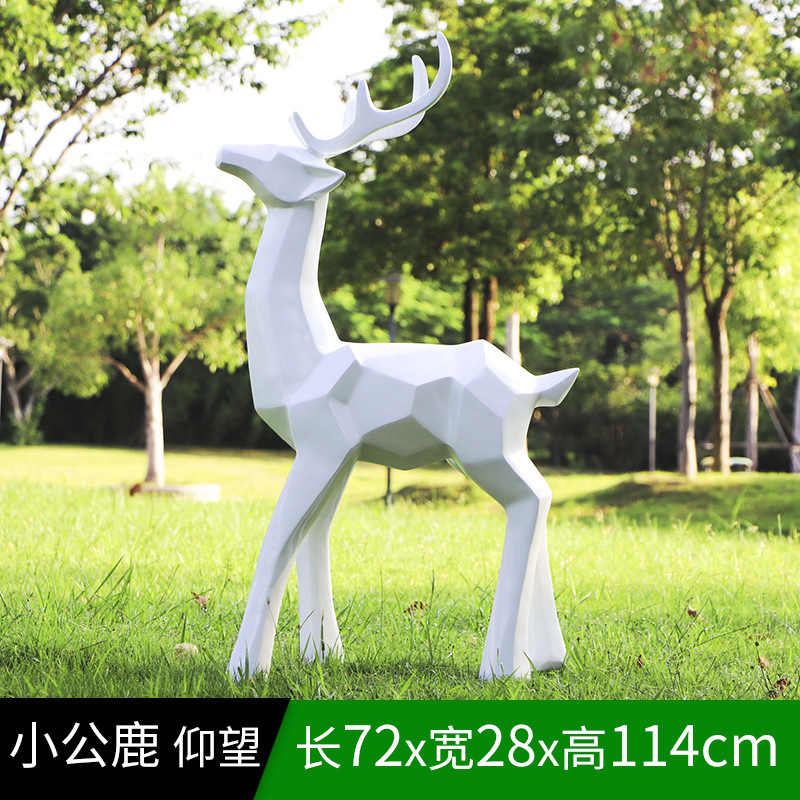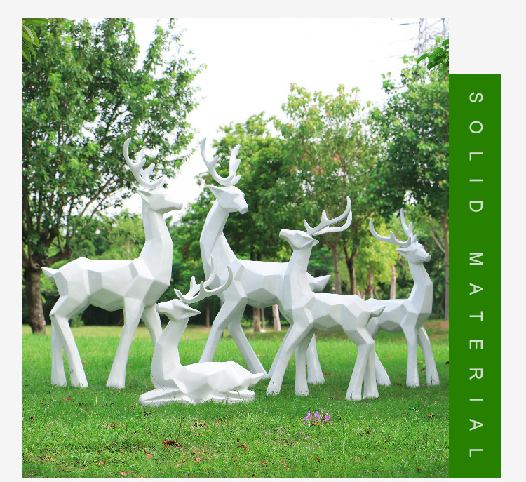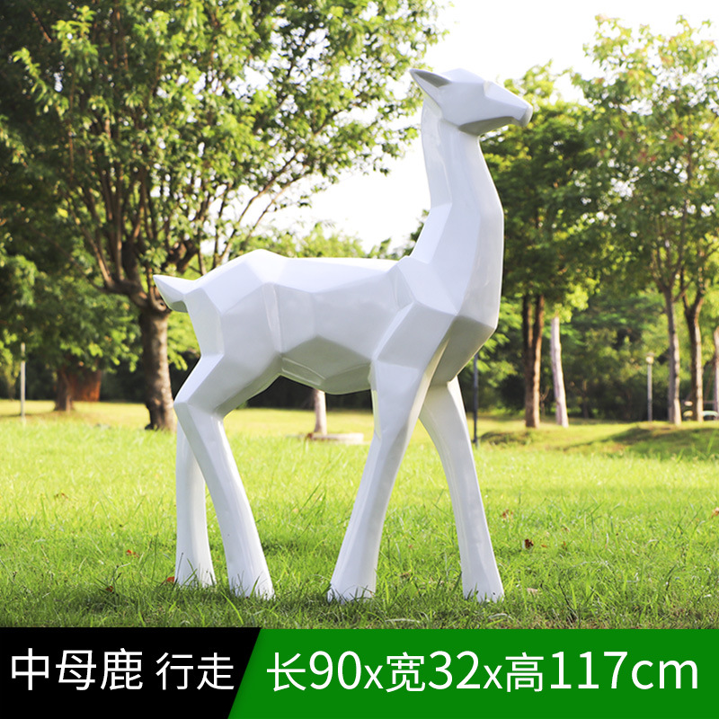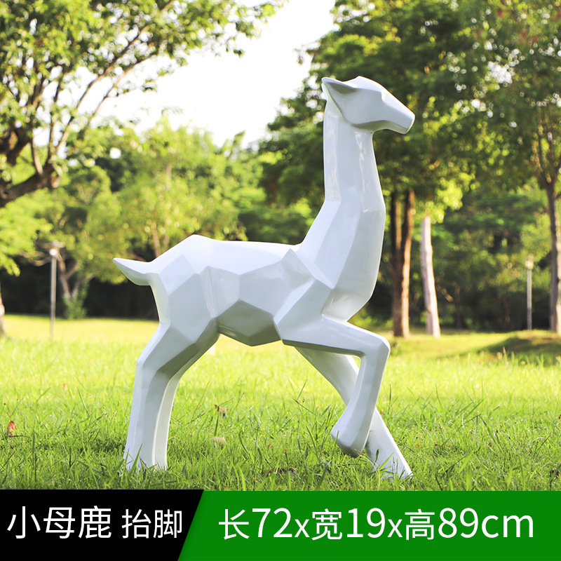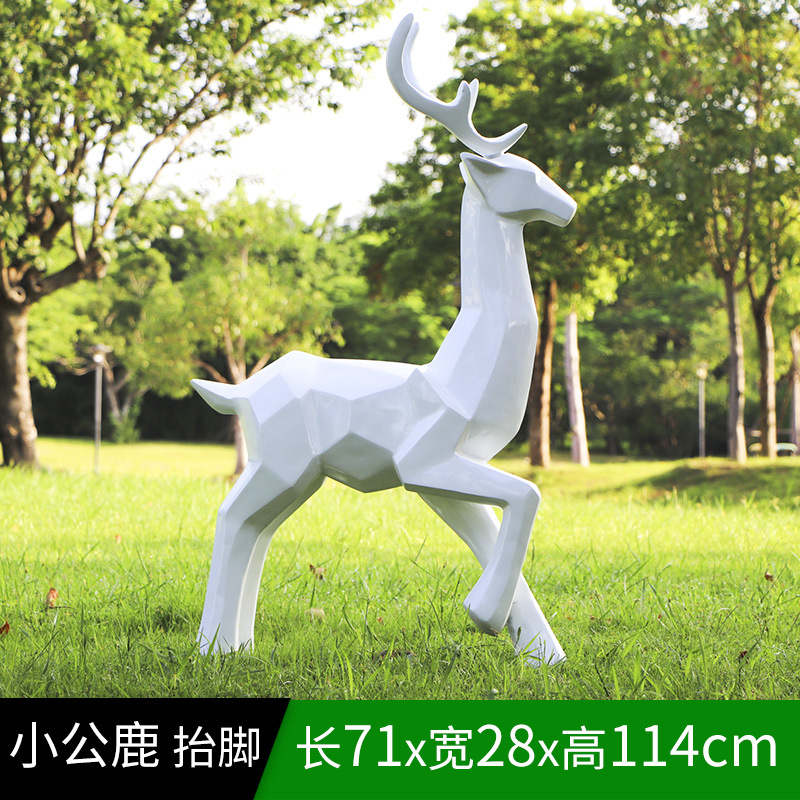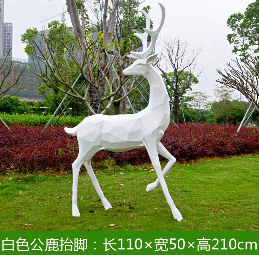 순수한 흰색 기하학적 시카 사슴 조각 시뮬레이션 동물 유리 강철 순수한 흰색 페인트 아트 사슴 쇼핑몰 장식 장식품스토어 가기