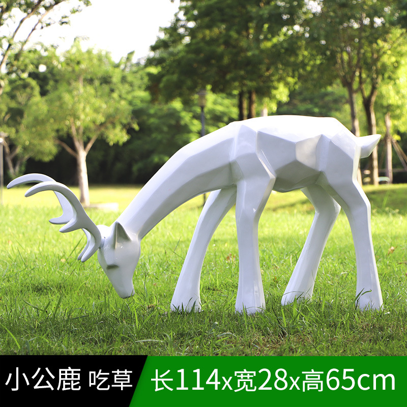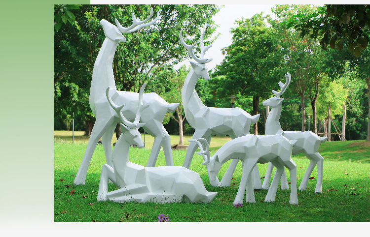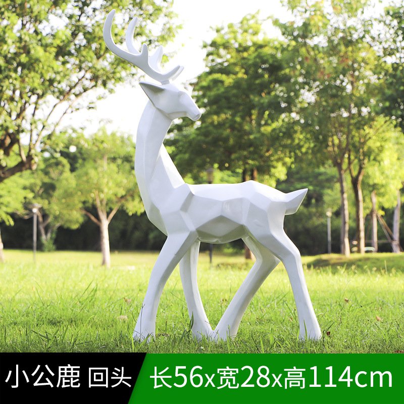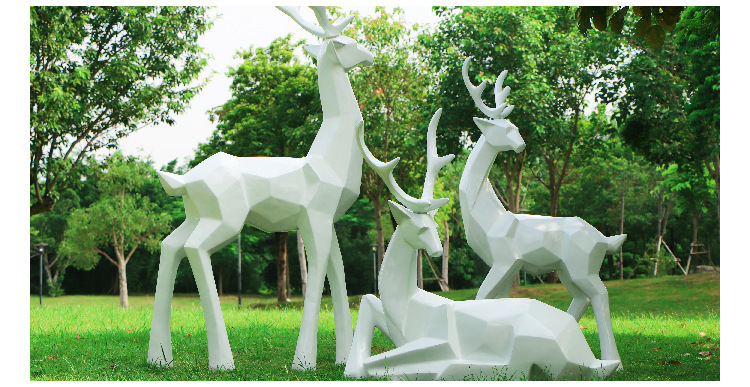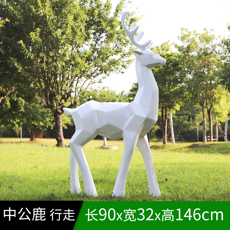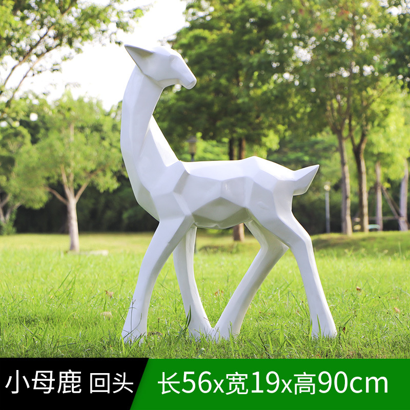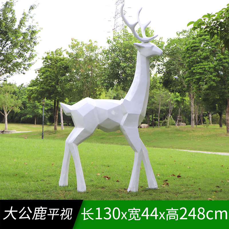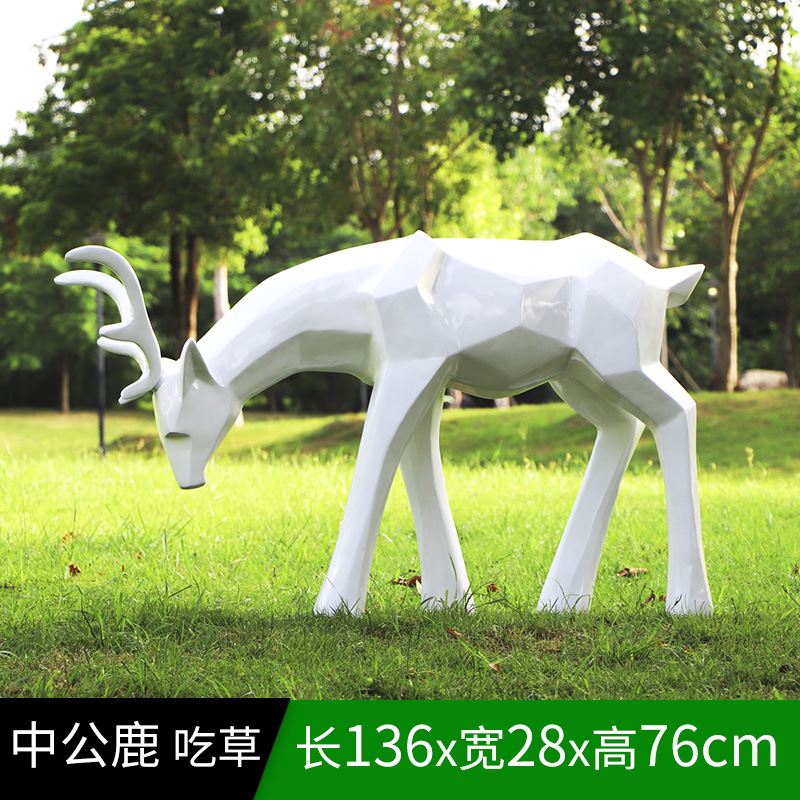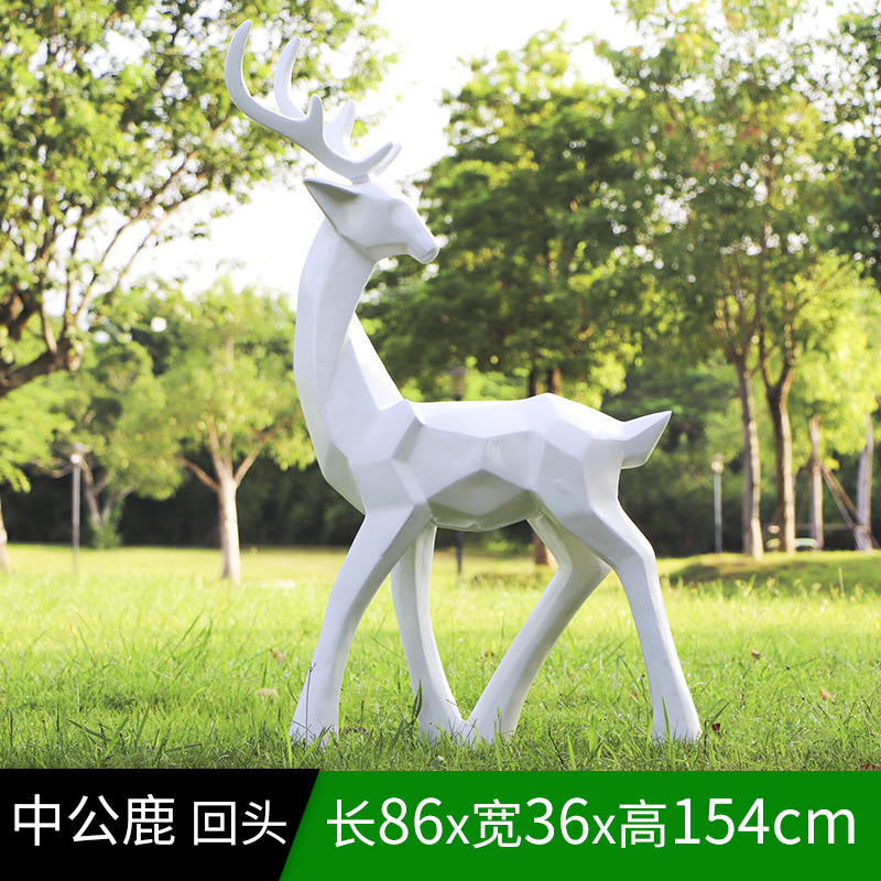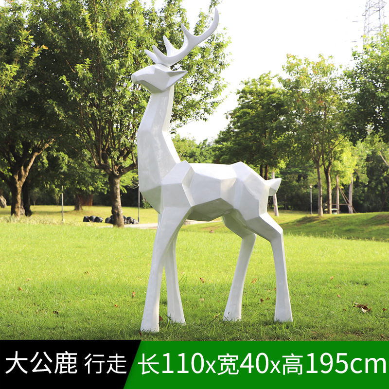 순수한 흰색 기하학적 시카 사슴 조각 시뮬레이션 동물 유리 강철 순수한 흰색 페인트 아트 사슴 쇼핑몰 장식 장식품스토어 가기