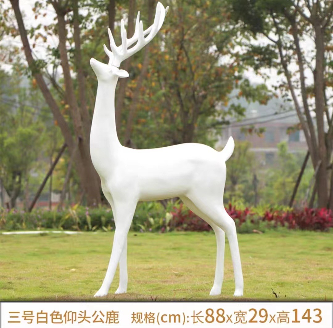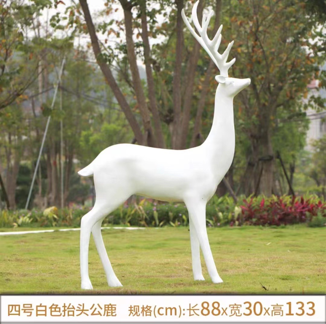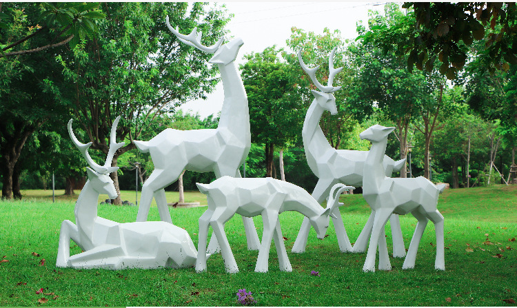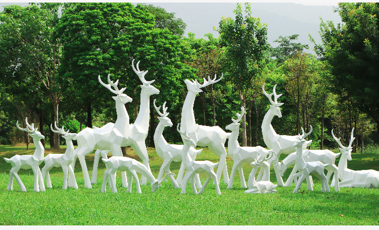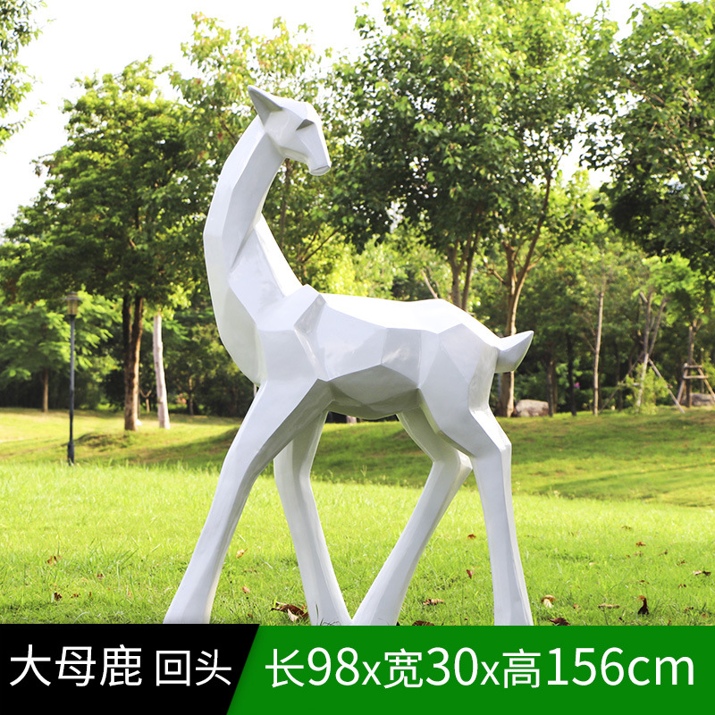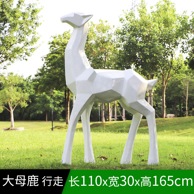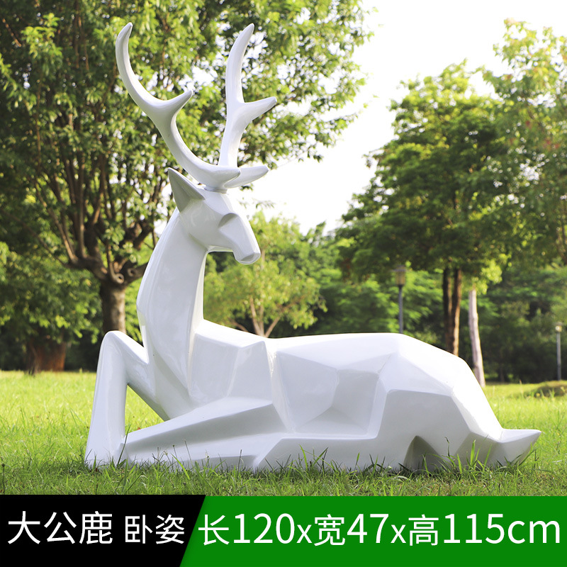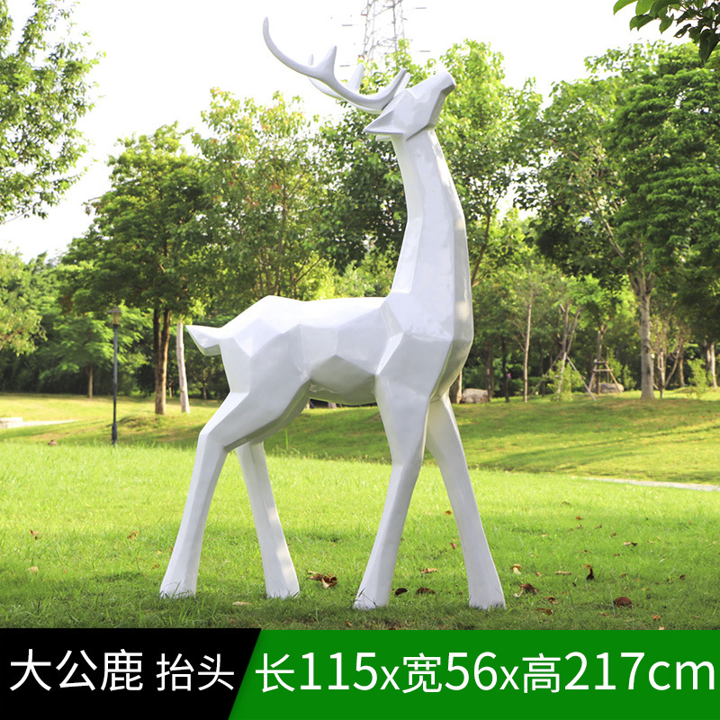 순수한 흰색 기하학적 시카 사슴 조각 시뮬레이션 동물 유리 강철 순수한 흰색 페인트 아트 사슴 쇼핑몰 장식 장식품스토어 가기