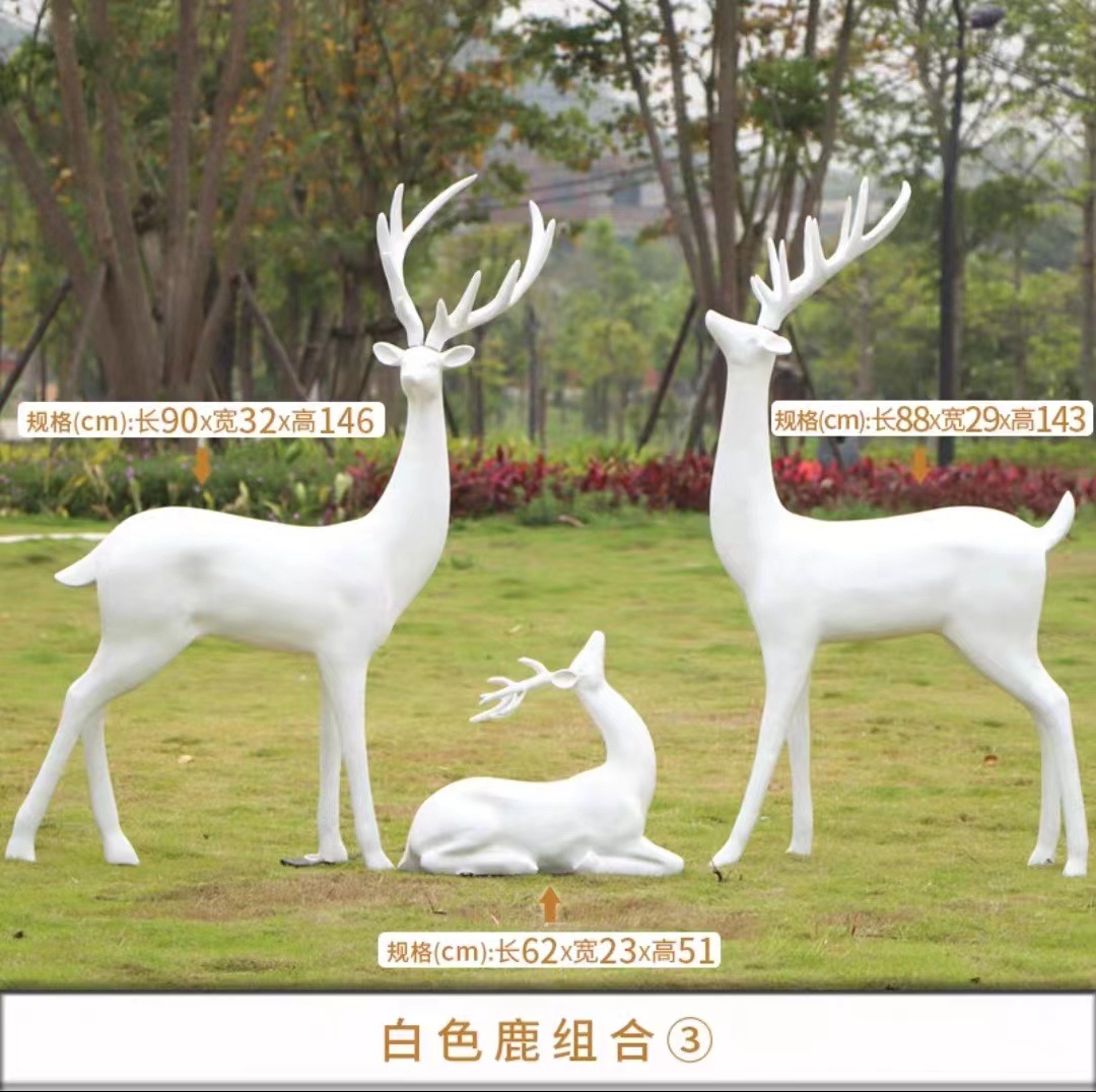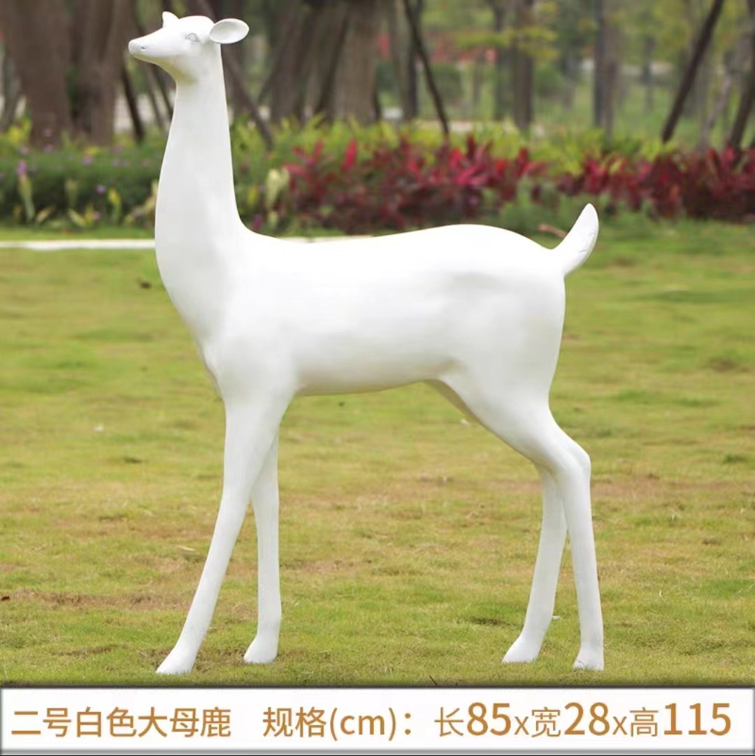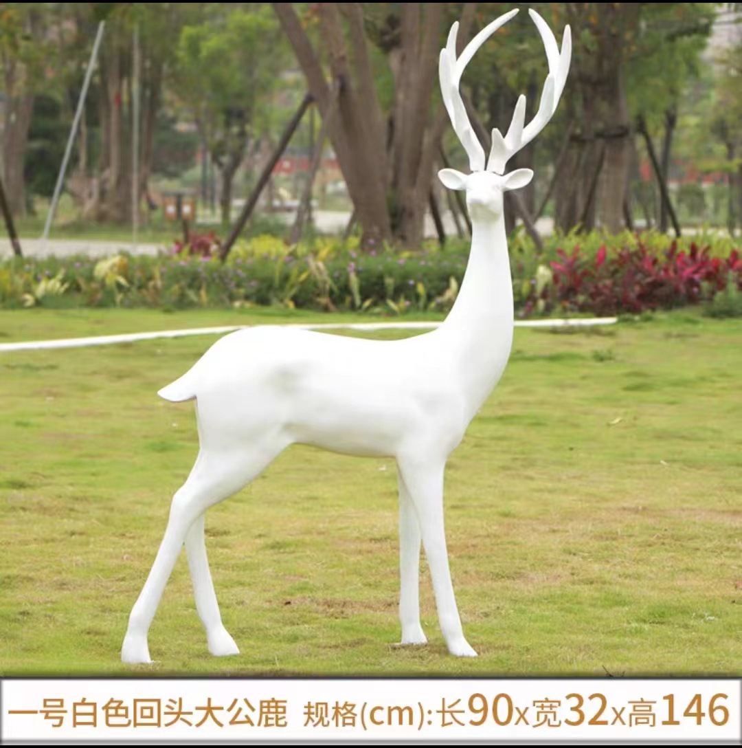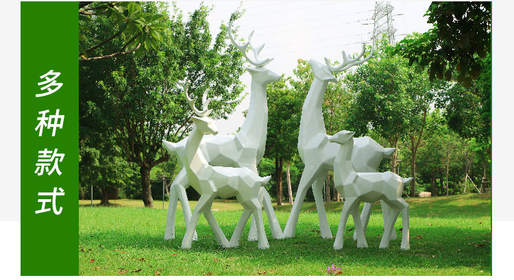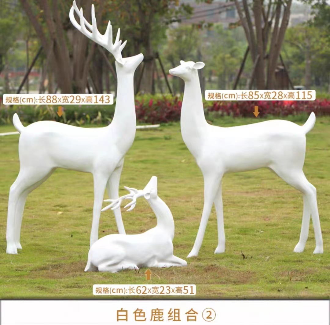 순수한 흰색 기하학적 시카 사슴 조각 시뮬레이션 동물 유리 강철 순수한 흰색 페인트 아트 사슴 쇼핑몰 장식 장식품스토어 가기