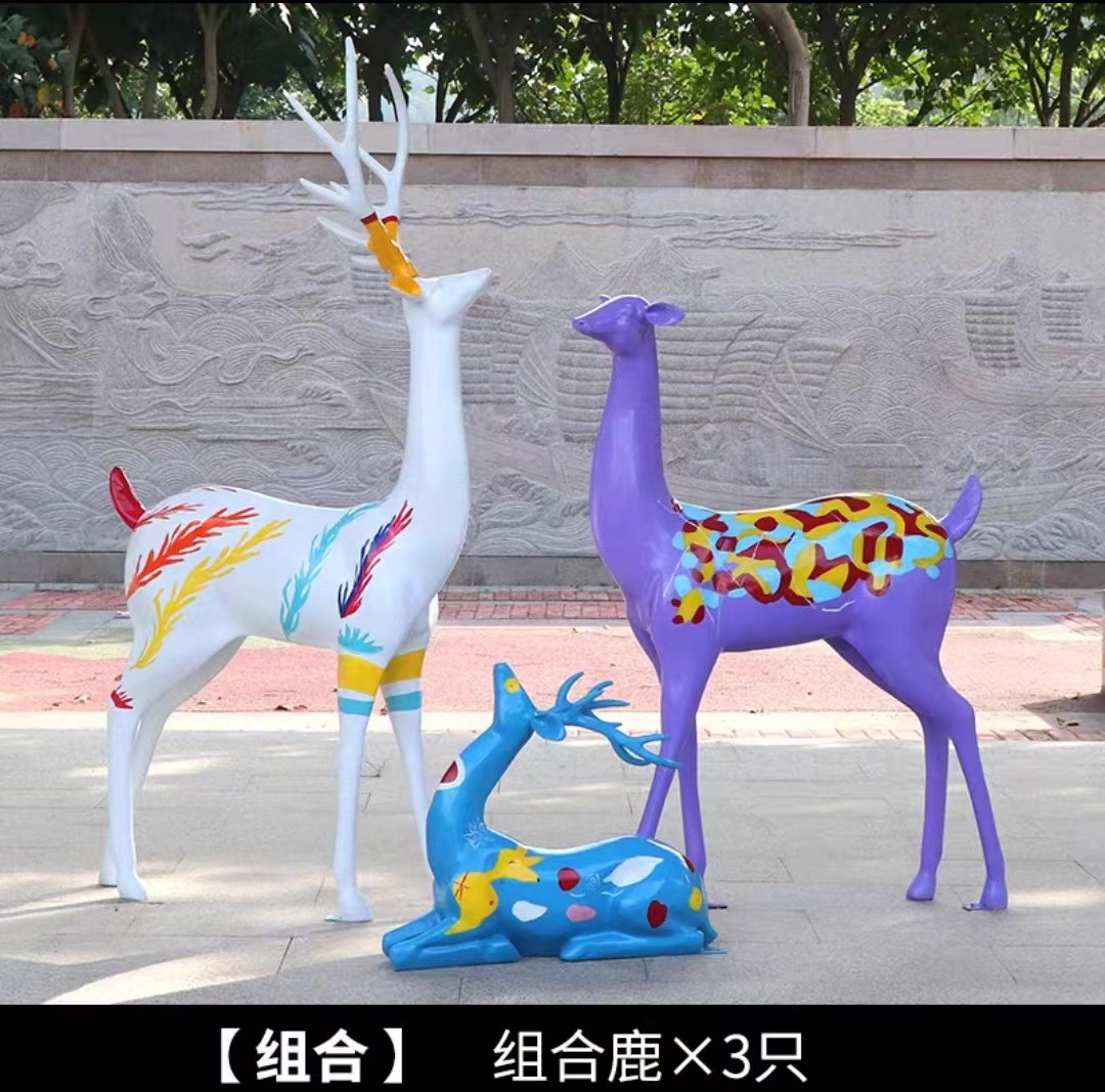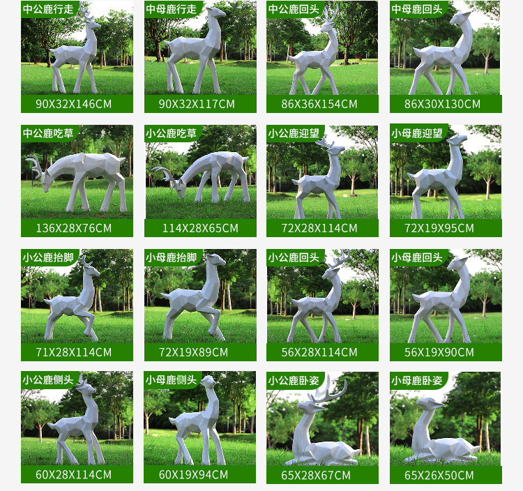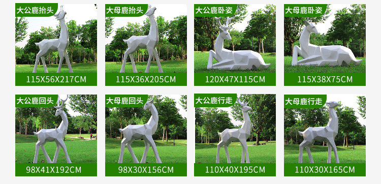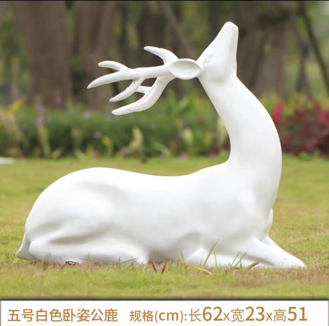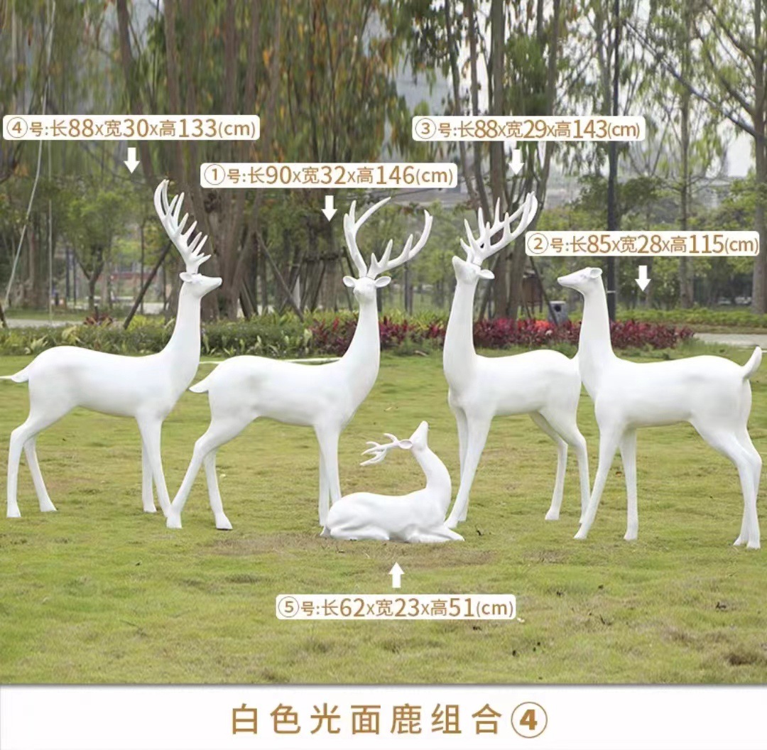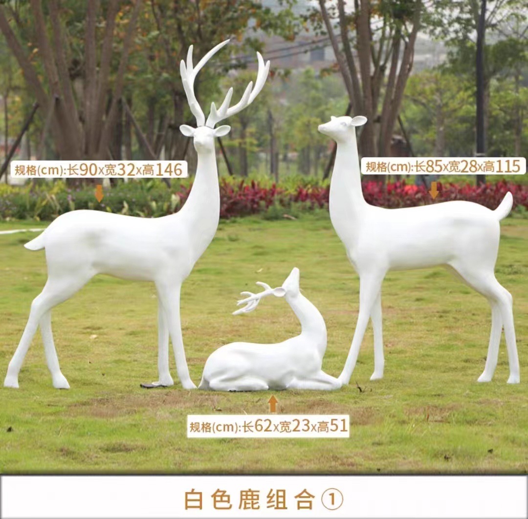 순수한 흰색 기하학적 시카 사슴 조각 시뮬레이션 동물 유리 강철 순수한 흰색 페인트 아트 사슴 쇼핑몰 장식 장식품스토어 가기