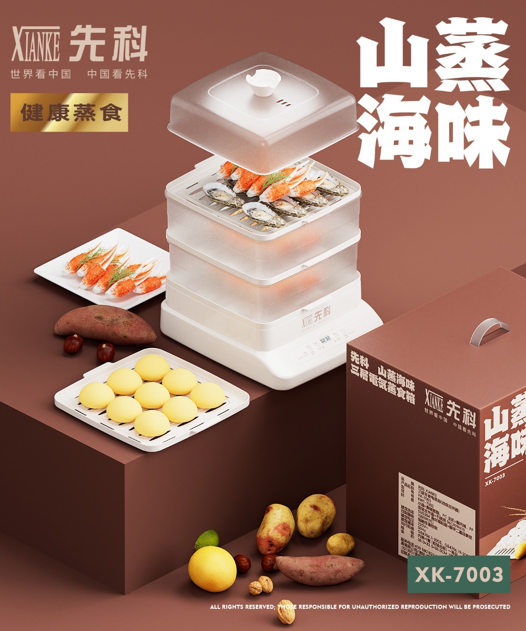뜨거운 판매 Xianke 전기 증기선 3 층 가정용 슈퍼 대용량 지능형 예약 자동 전원 오프 전기 증기선 선물 도매스토어 가기