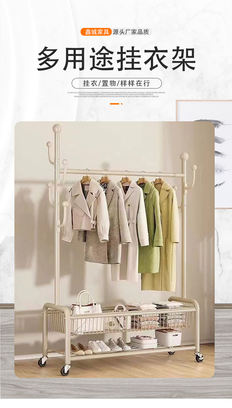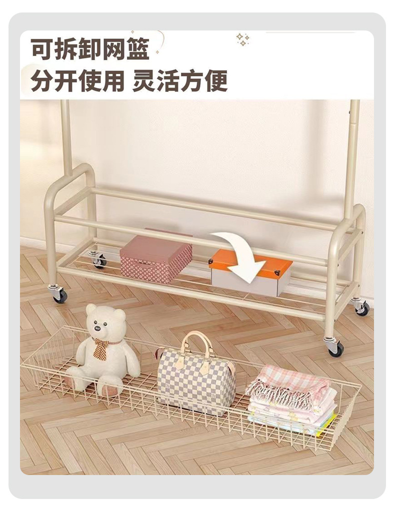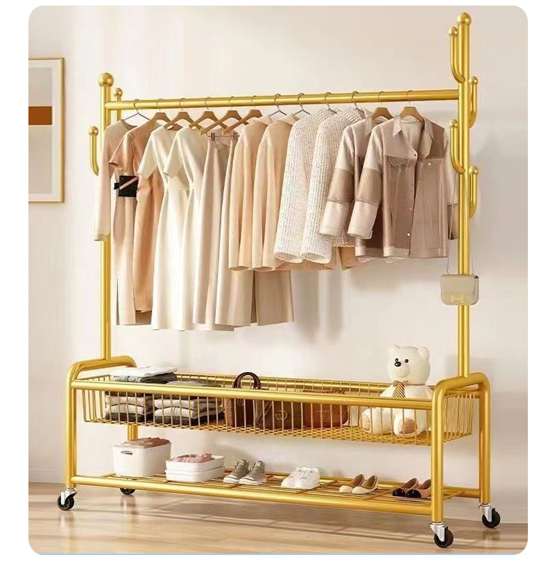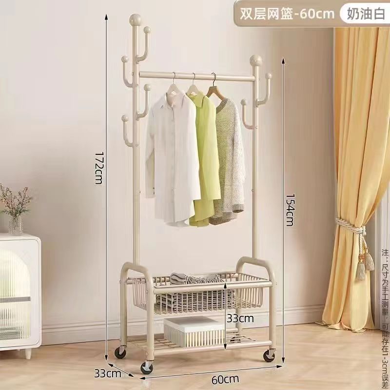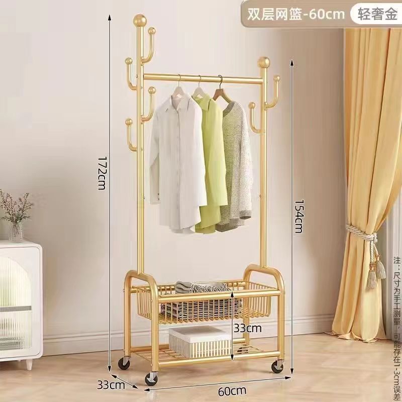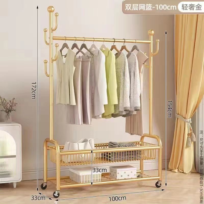 가정용 침실 옷걸이, 바구니가 있는 바닥형 옷걸이, 발코니 거실용 이동식 옷걸이