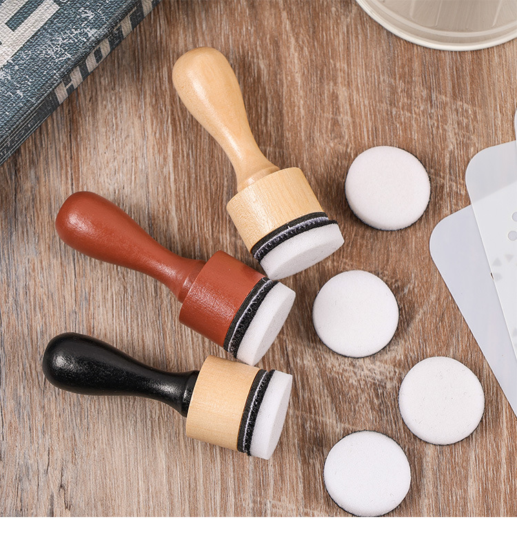 국경 간 나무 손잡이 색칠 스폰지 씰 중공 템플릿 색칠 도구 손 계정 인쇄 패드 diy 피는 재료