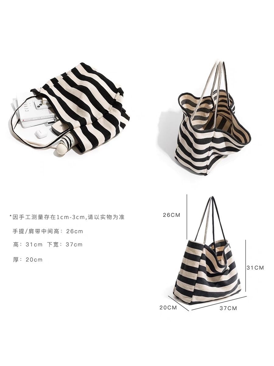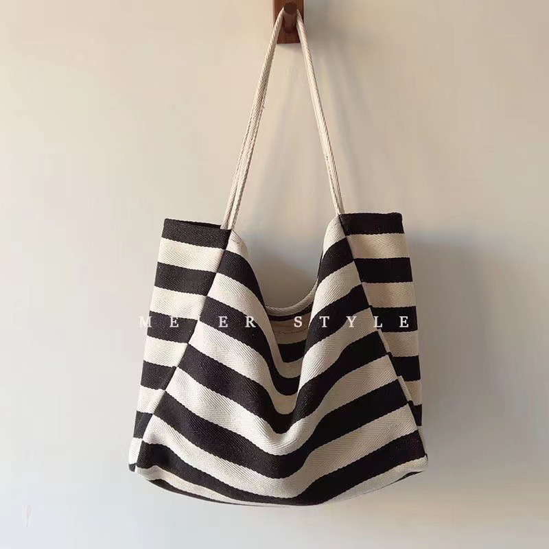 한국 인스 스타일 배색 스트라이프 캔버스백 토트백 대용량 숄더백 쇼핑백