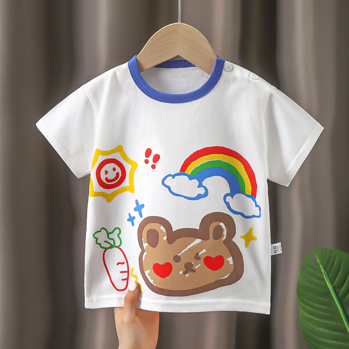 어린이 티셔츠 반소매 코튼 여름 새 아기 한국식 2024 소년 반소매 여학생 보투밍 아동복스토어 가기