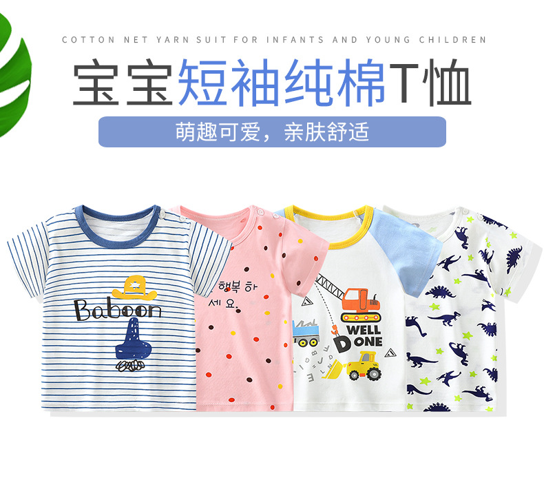 어린이 티셔츠 반소매 코튼 여름 새 아기 한국식 2024 소년 반소매 여학생 보투밍 아동복