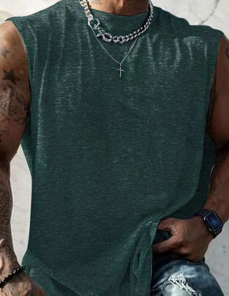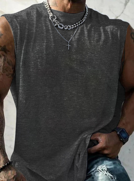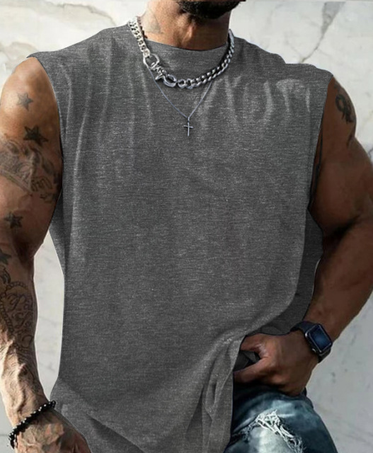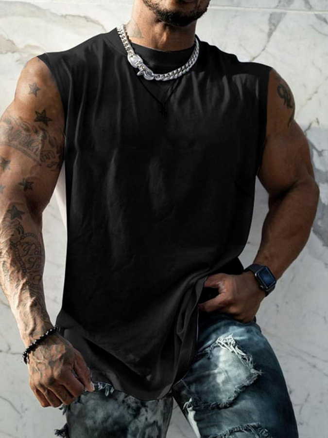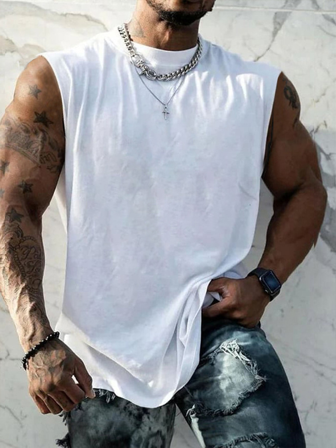 흰색 잉크 인쇄 원피스 만든 남성 여름 피트니스 와이드 어깨 캐주얼 느슨한 달리기 민소매 조끼스토어 가기