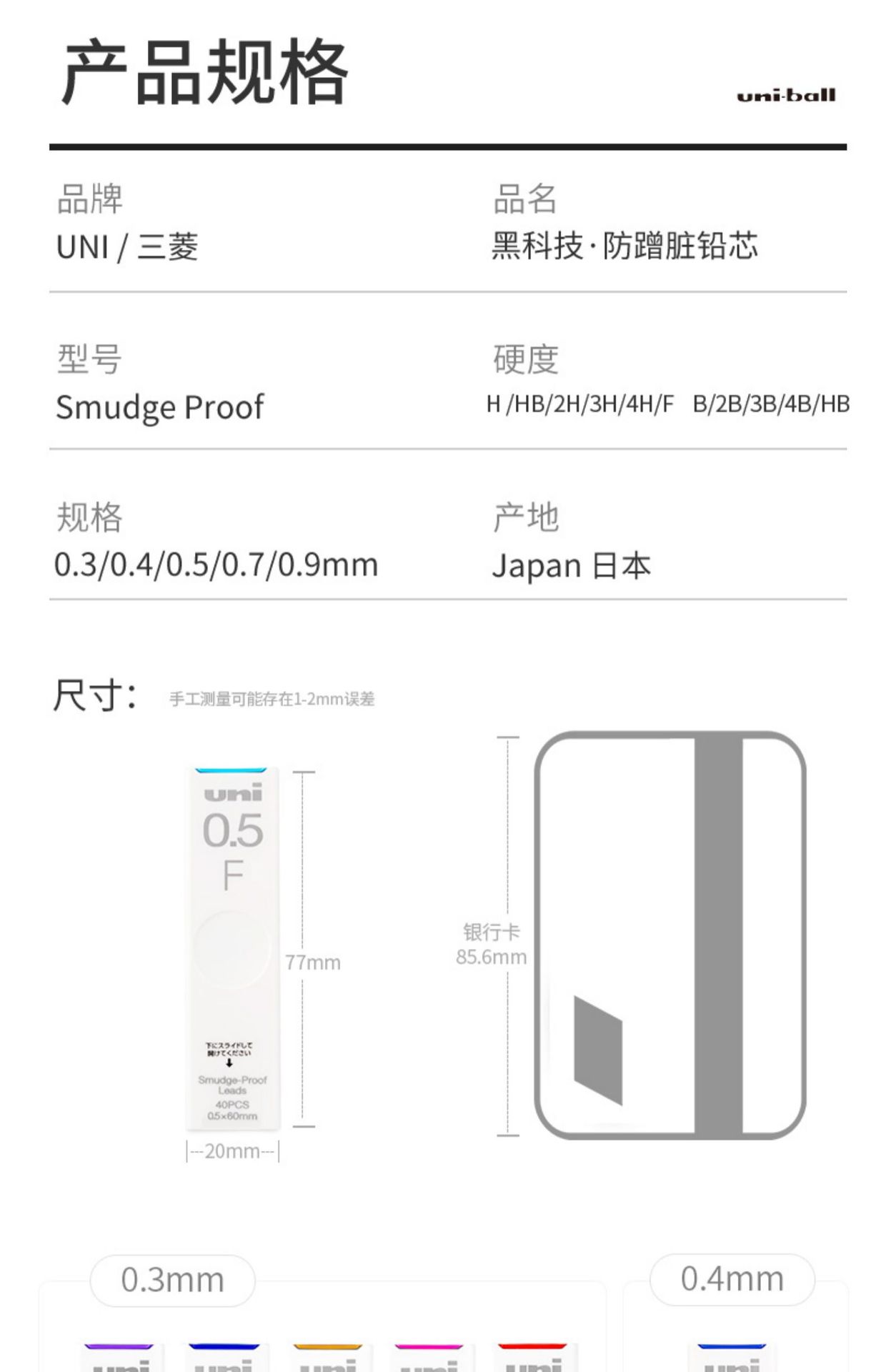 일본 수입 유니 미쓰비시 자동 연필심 초등학생용 0.3/0.4/0.5/0.7 고객 서비스 수입 문구