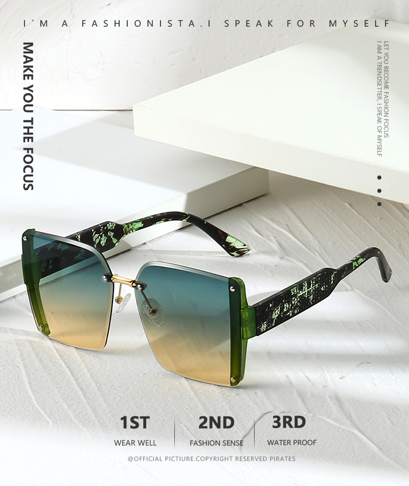 새로운 패션 스퀘어 프레임리스 엣지 컷 독특한 유럽과 미국의 쇼 라이트 럭셔리 선글라스 Ins 인터넷 연예인 동일 스타일 선글라스 트렌디스토어 가기