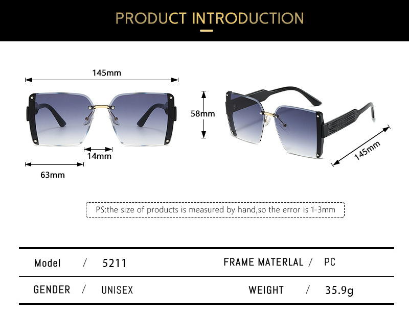 새로운 패션 스퀘어 프레임리스 엣지 컷 독특한 유럽과 미국의 쇼 라이트 럭셔리 선글라스 Ins 인터넷 연예인 동일 스타일 선글라스 트렌디