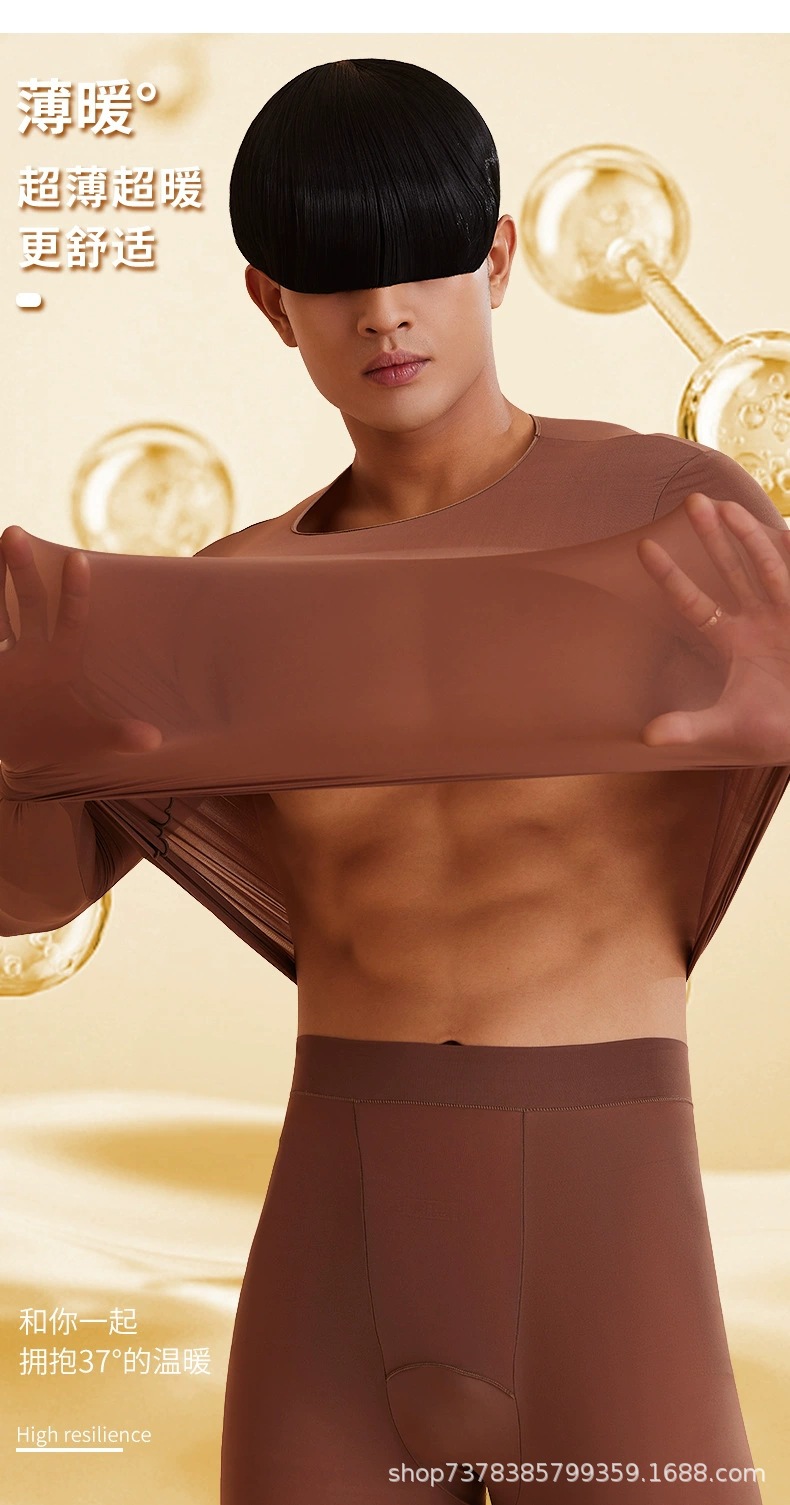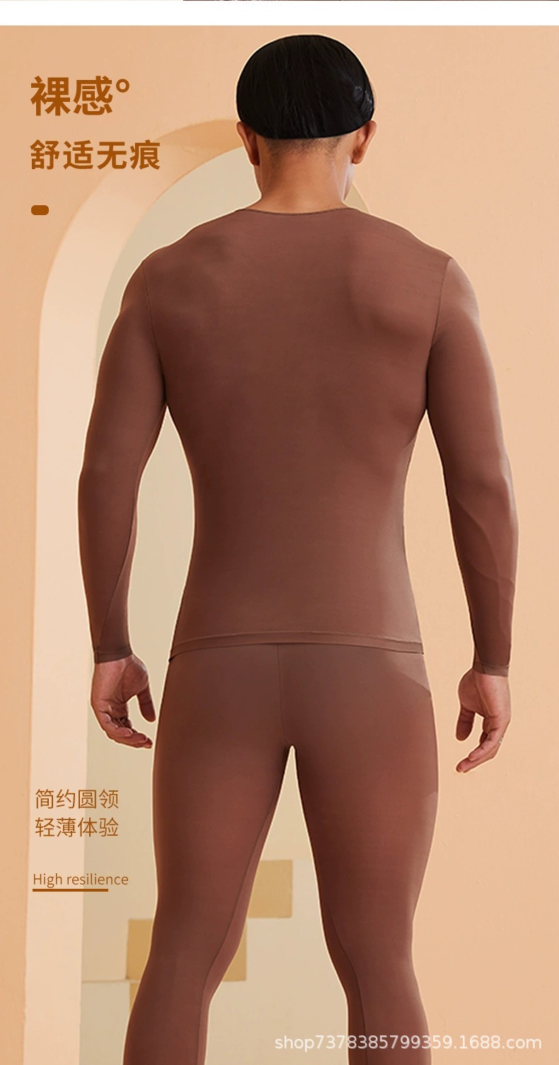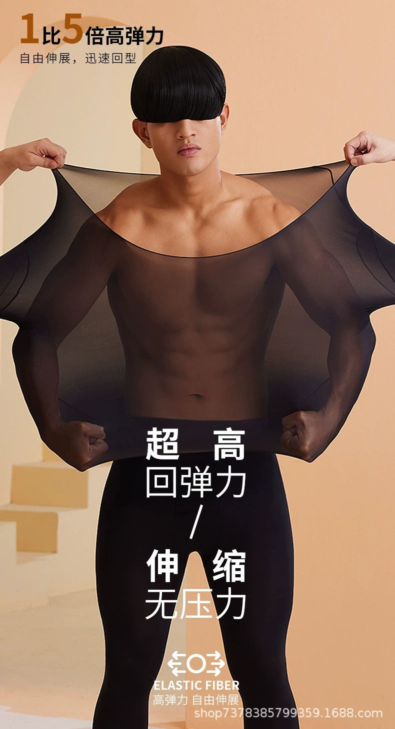초박형 남성용 보온 속옷, 무봉제 자체 발열 피부 미용 의류, 가을 겨울 기본 남성용 히알루론산 가을 옷과 긴 바지 세트스토어 가기