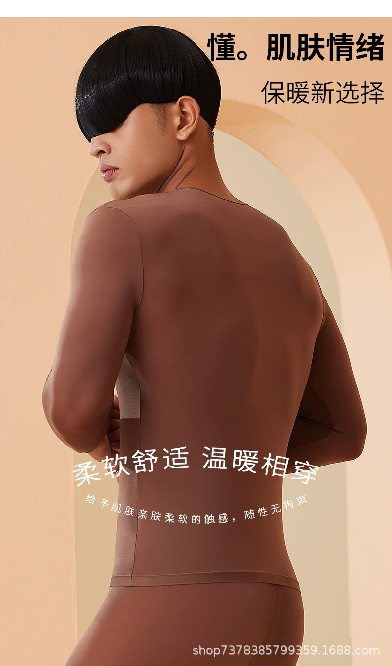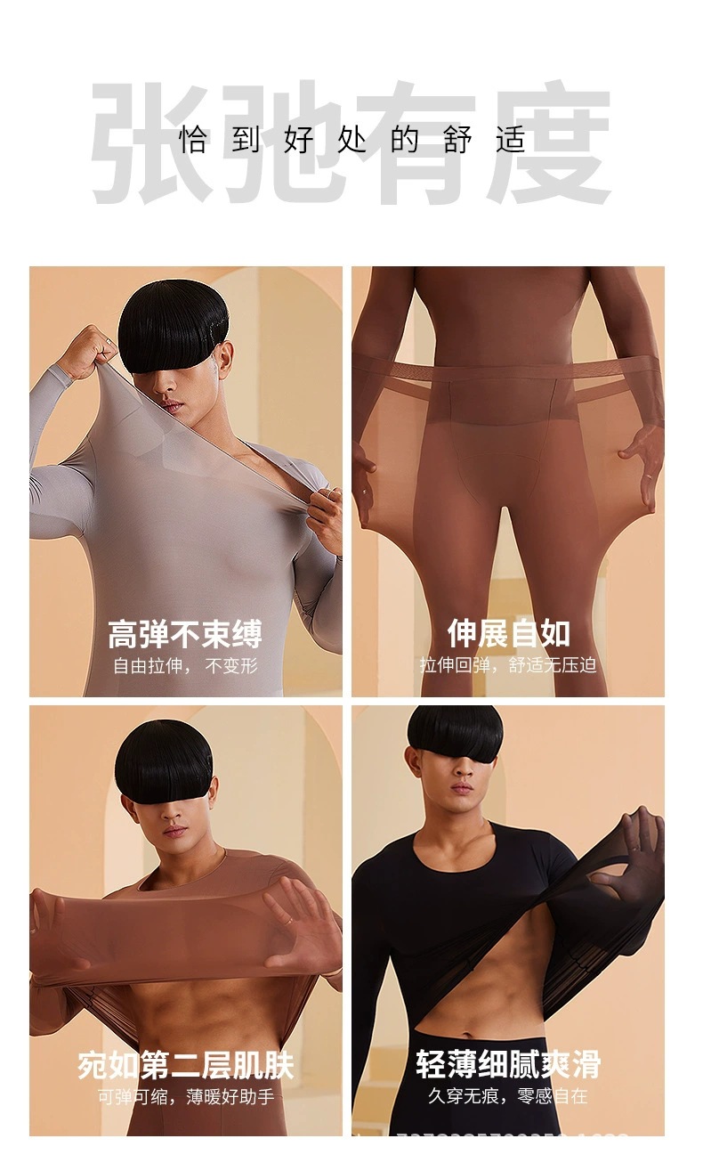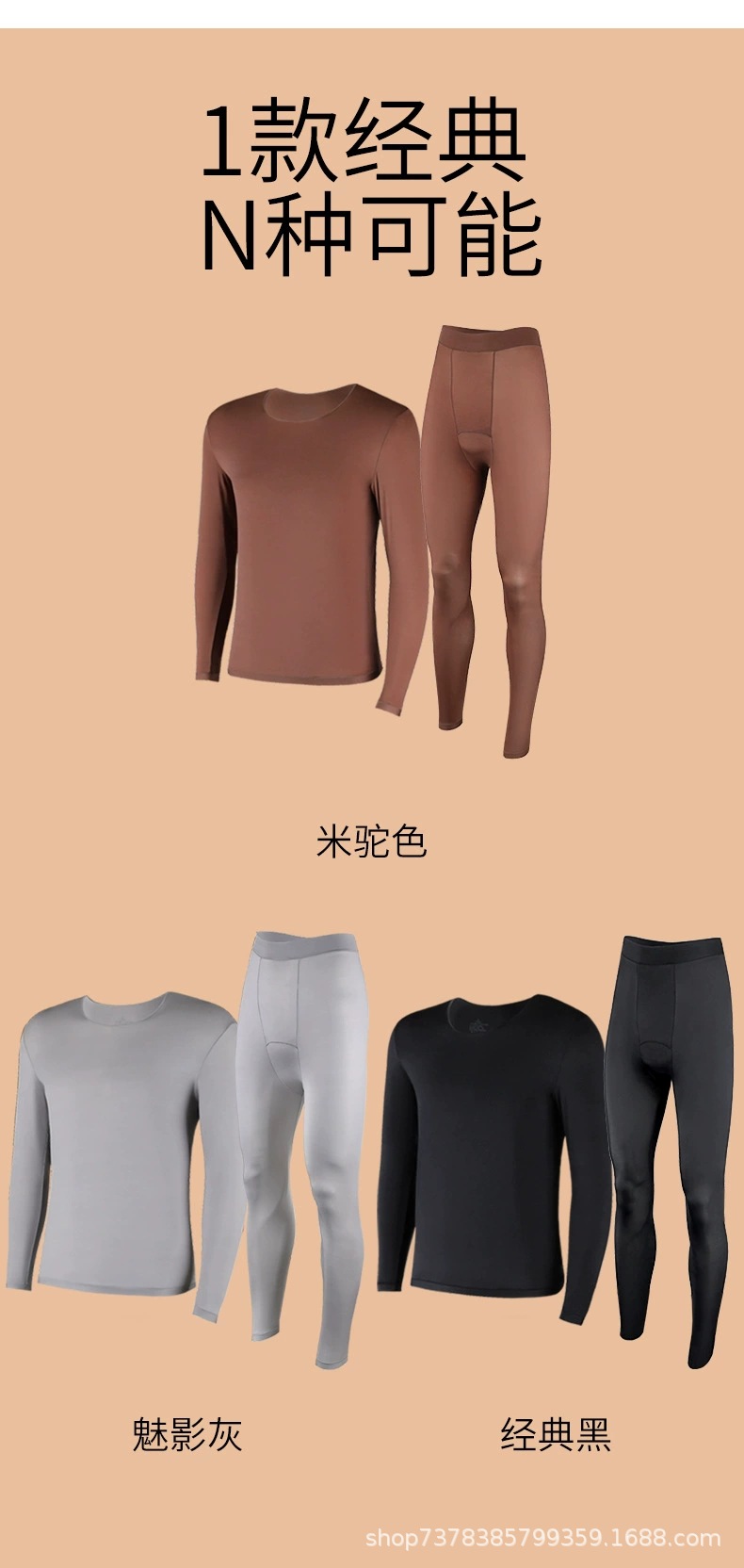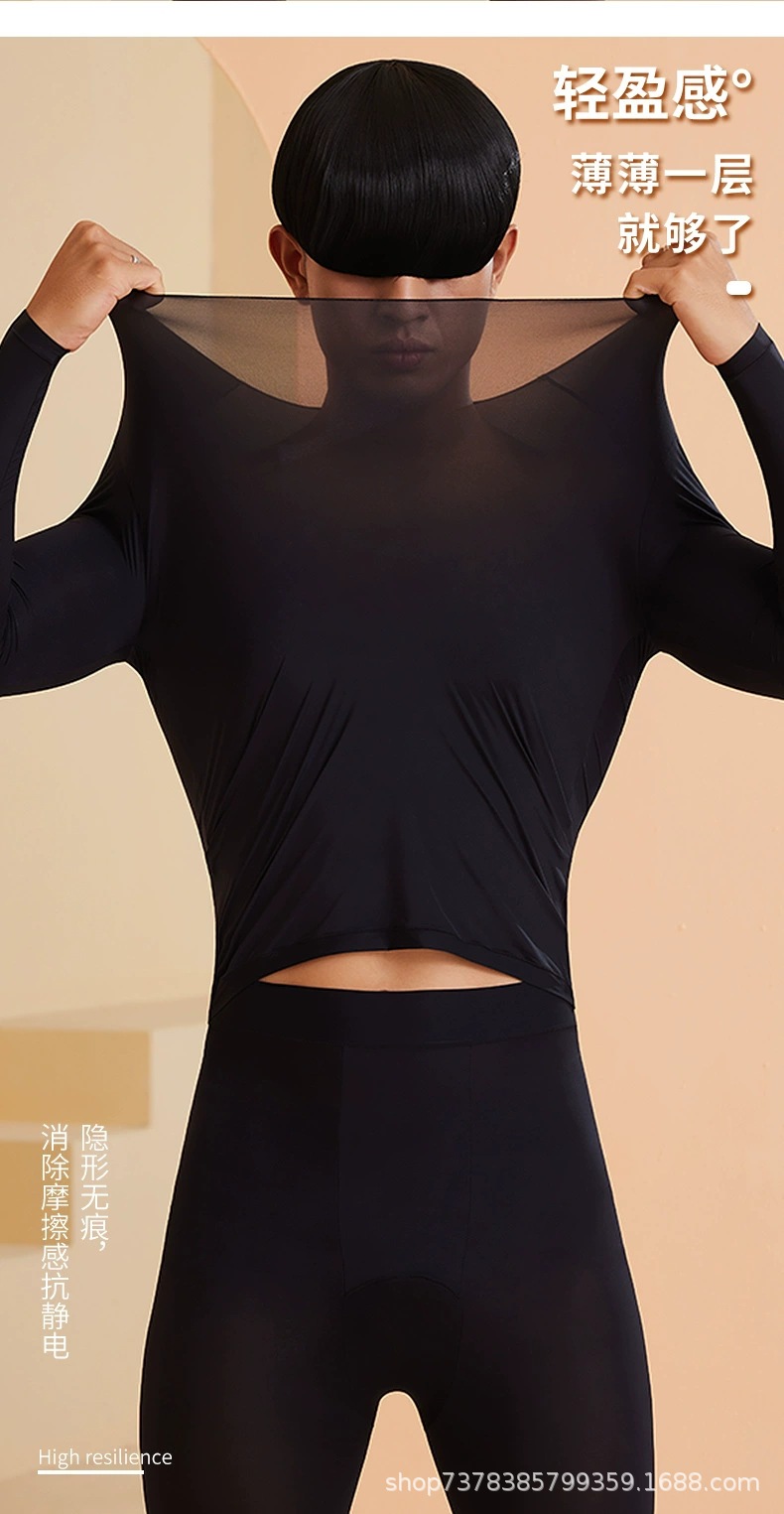 초박형 남성용 보온 속옷, 무봉제 자체 발열 피부 미용 의류, 가을 겨울 기본 남성용 히알루론산 가을 옷과 긴 바지 세트스토어 가기