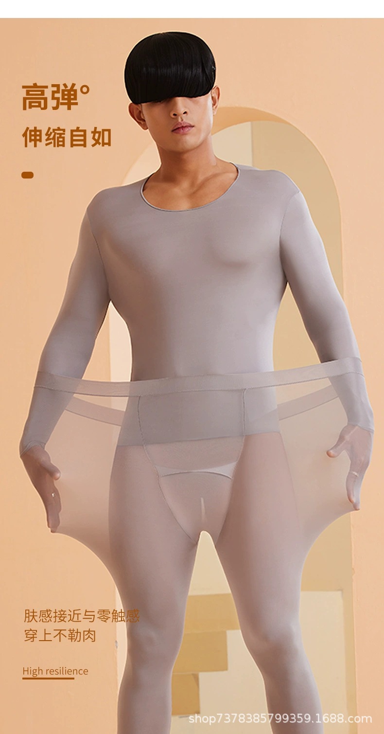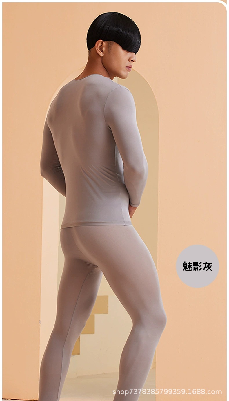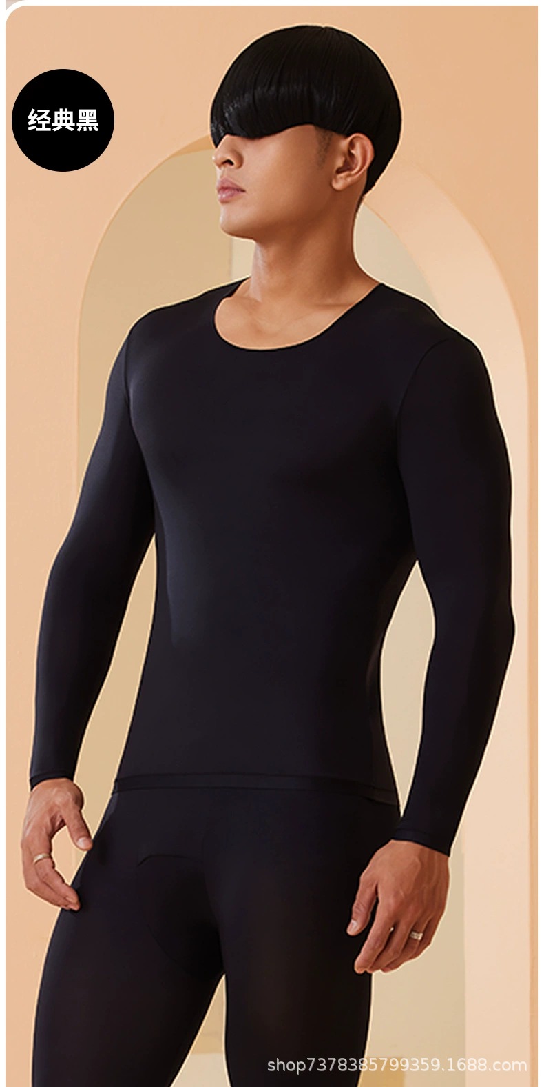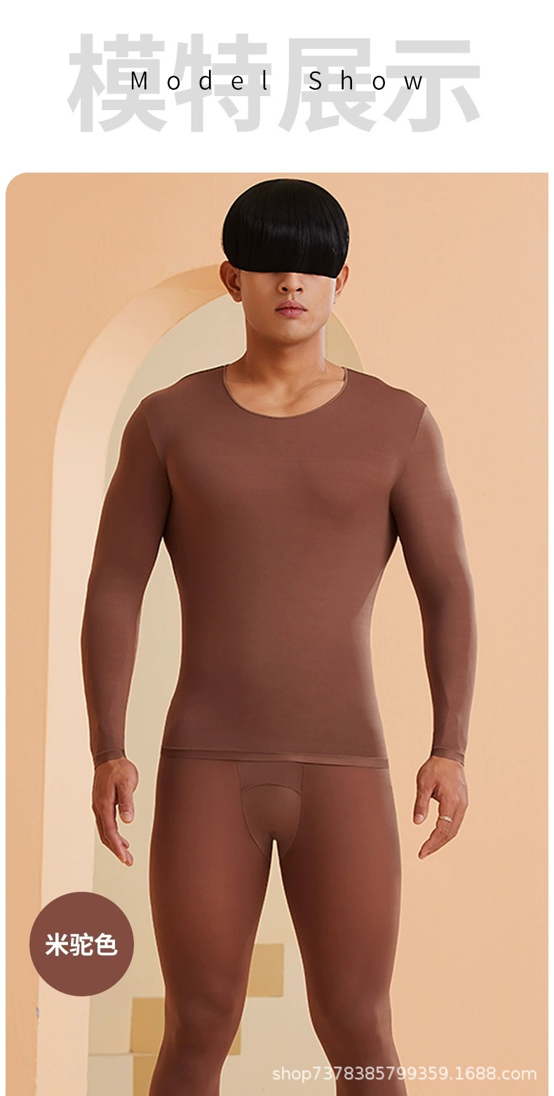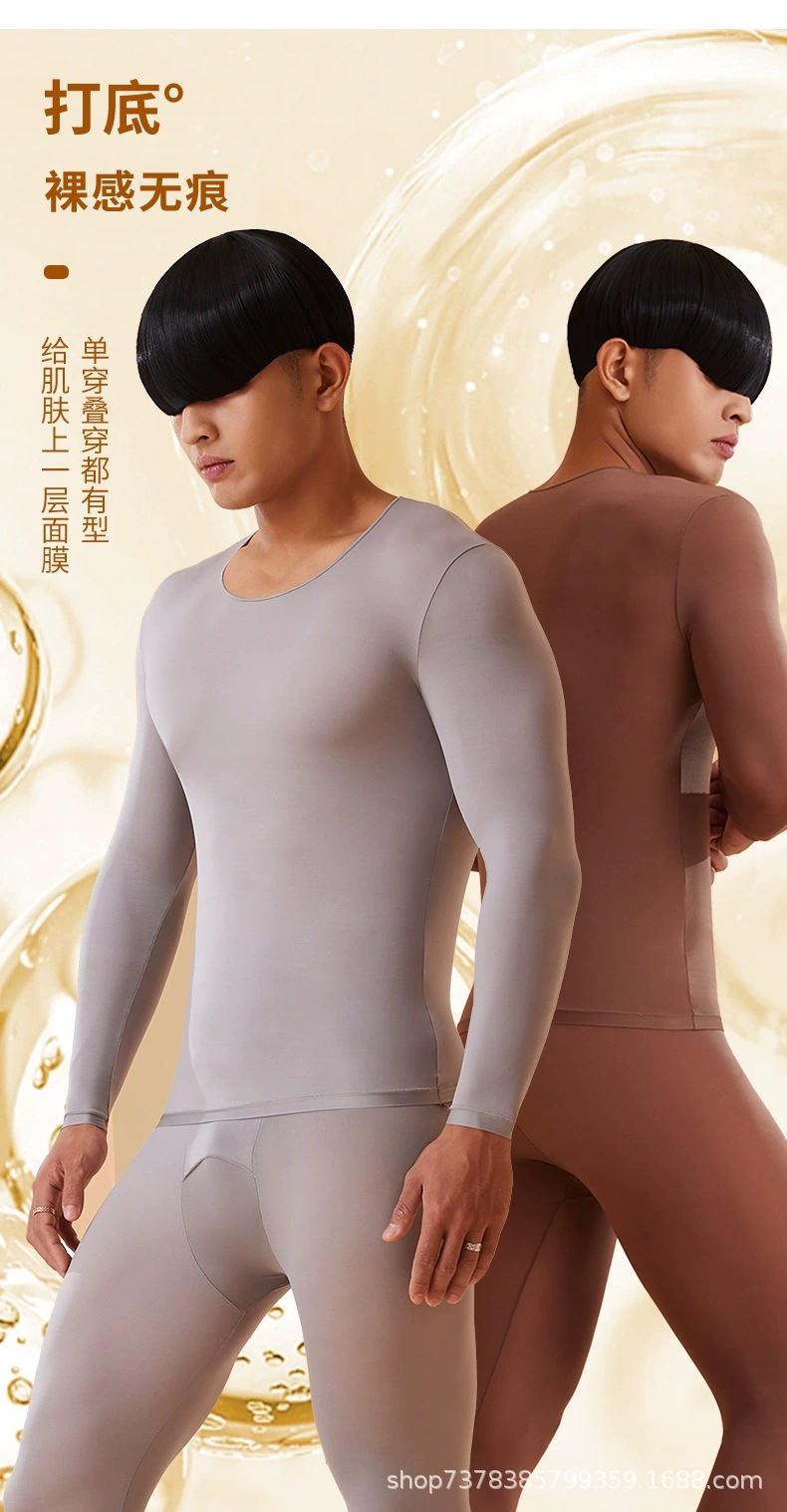 초박형 남성용 보온 속옷, 무봉제 자체 발열 피부 미용 의류, 가을 겨울 기본 남성용 히알루론산 가을 옷과 긴 바지 세트