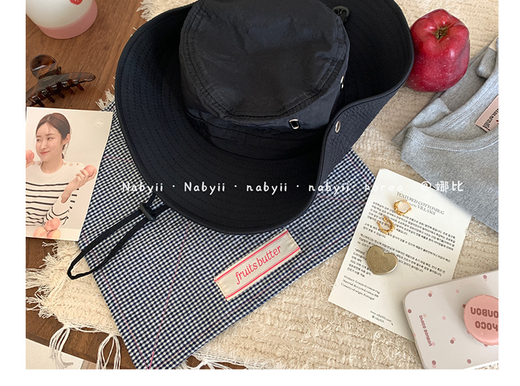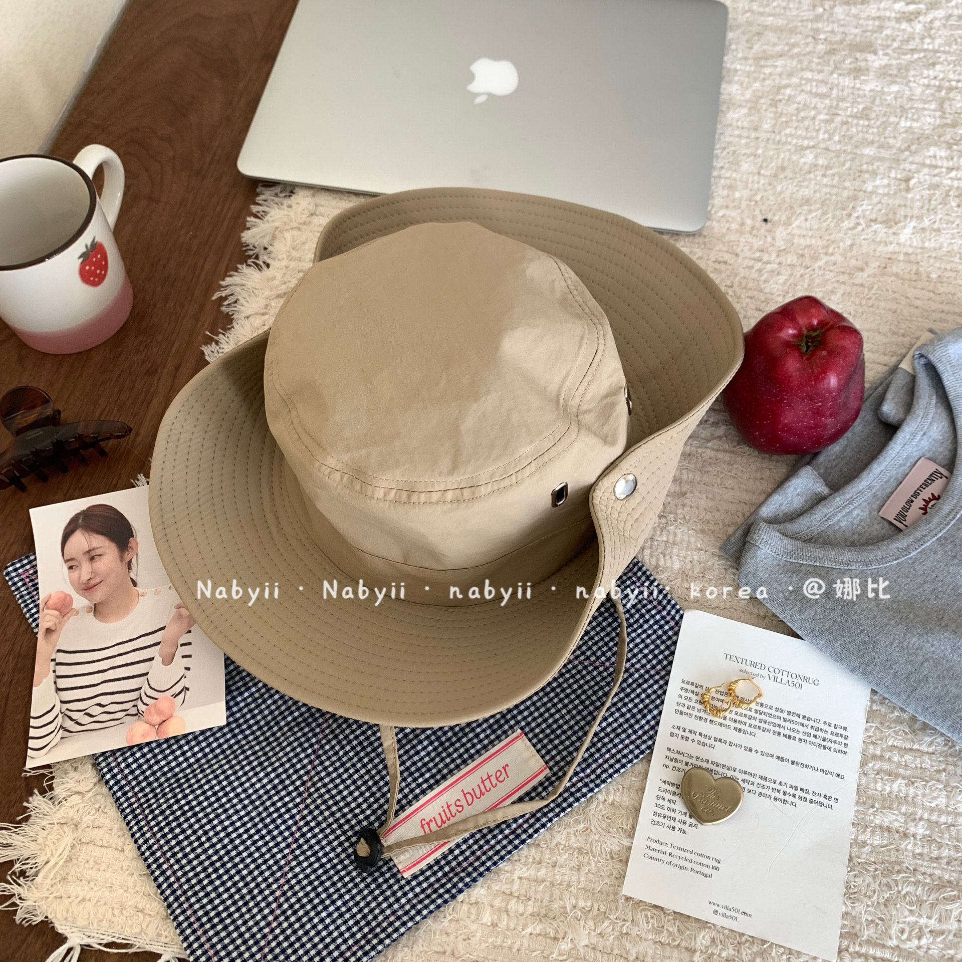 일본식 큰귀마 드루스트링 선스크린 어부 모자 여성 여름 야외 등산 모자 해변 휴일 캠핑 등산 모자