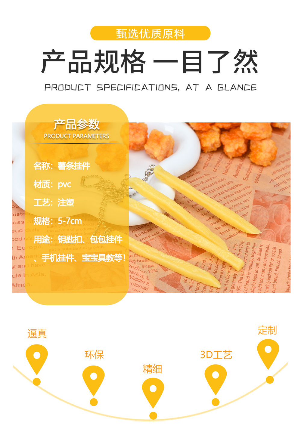 시뮬레이션 프렌치 프라이 펜던트 비드 체인 프렌치 프라이 모델 어린이 음식 놀이 KFC 프렌치 프라이 장난감 키 펜던트