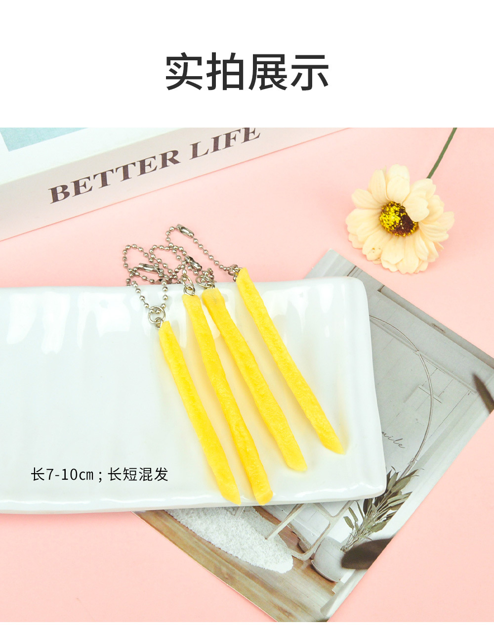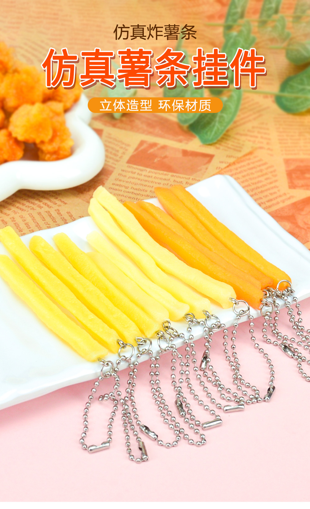 시뮬레이션 프렌치 프라이 펜던트 비드 체인 프렌치 프라이 모델 어린이 음식 놀이 KFC 프렌치 프라이 장난감 키 펜던트스토어 가기