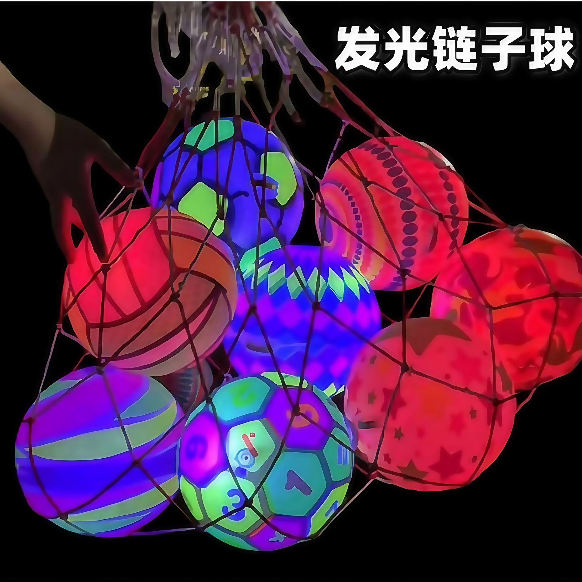 七彩链子球带灯球是球里加装了一个灯珠,用手拍了才会亮哦!