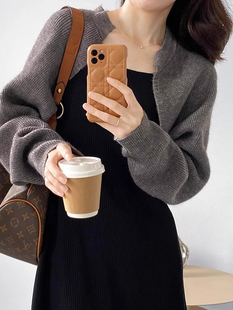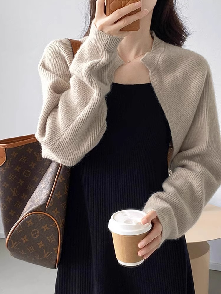 프랑스 스타일 웨이슬 짧은 니트 카디건 여성의 봄과 가을 외부 블라우스 매칭 스커트 목도리 배팅 슬리브 스웨터 코트스토어 가기