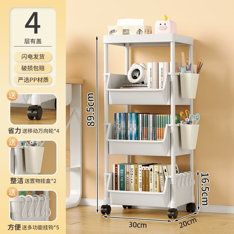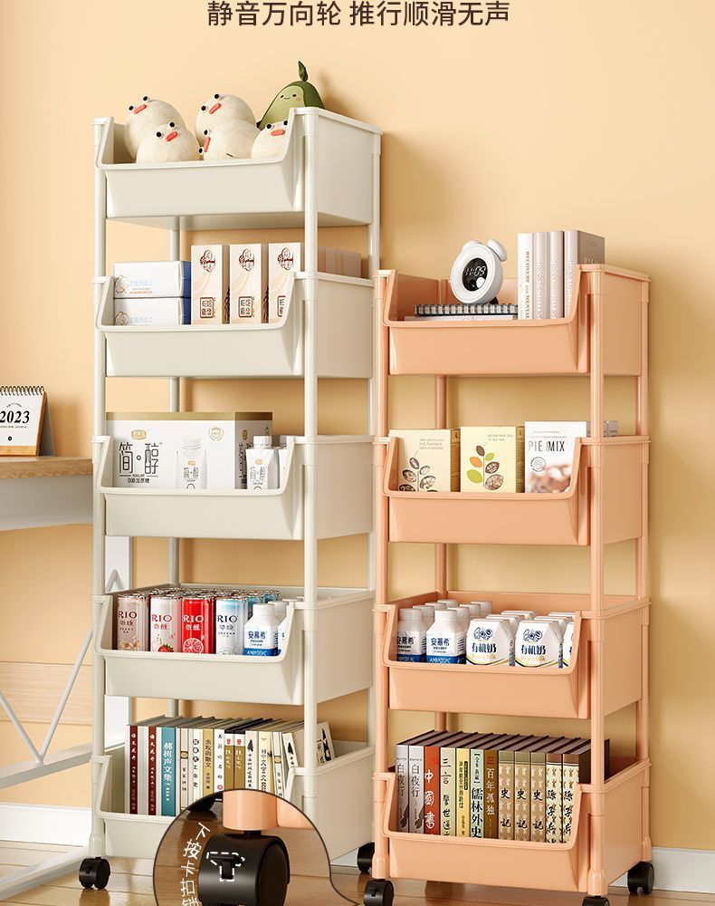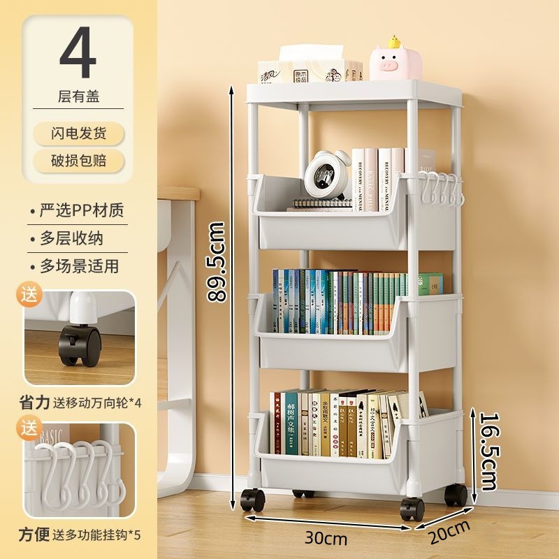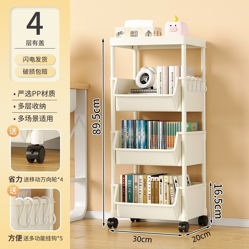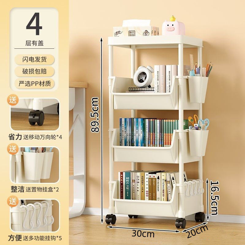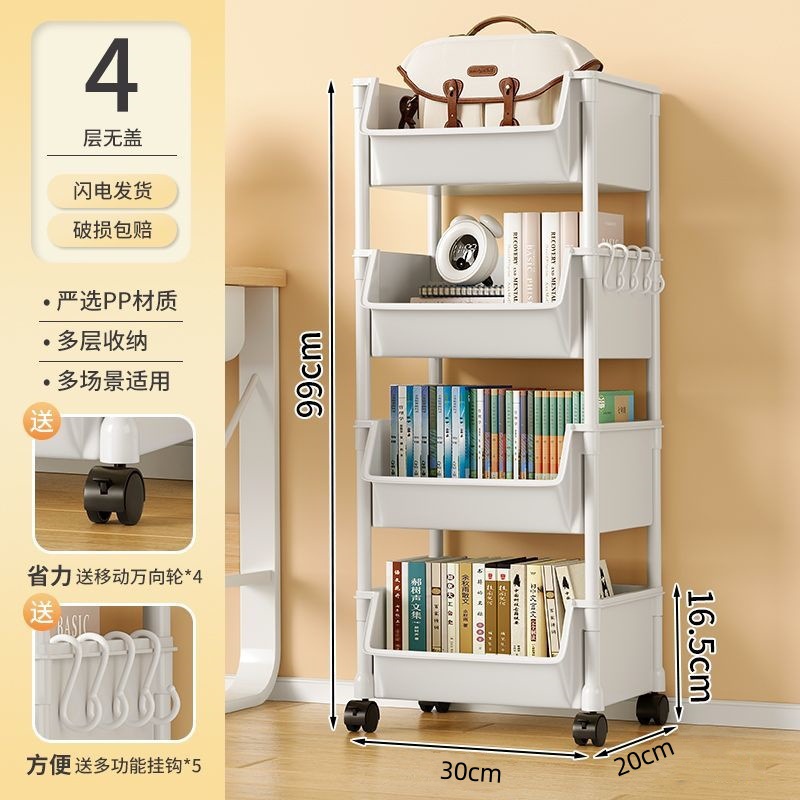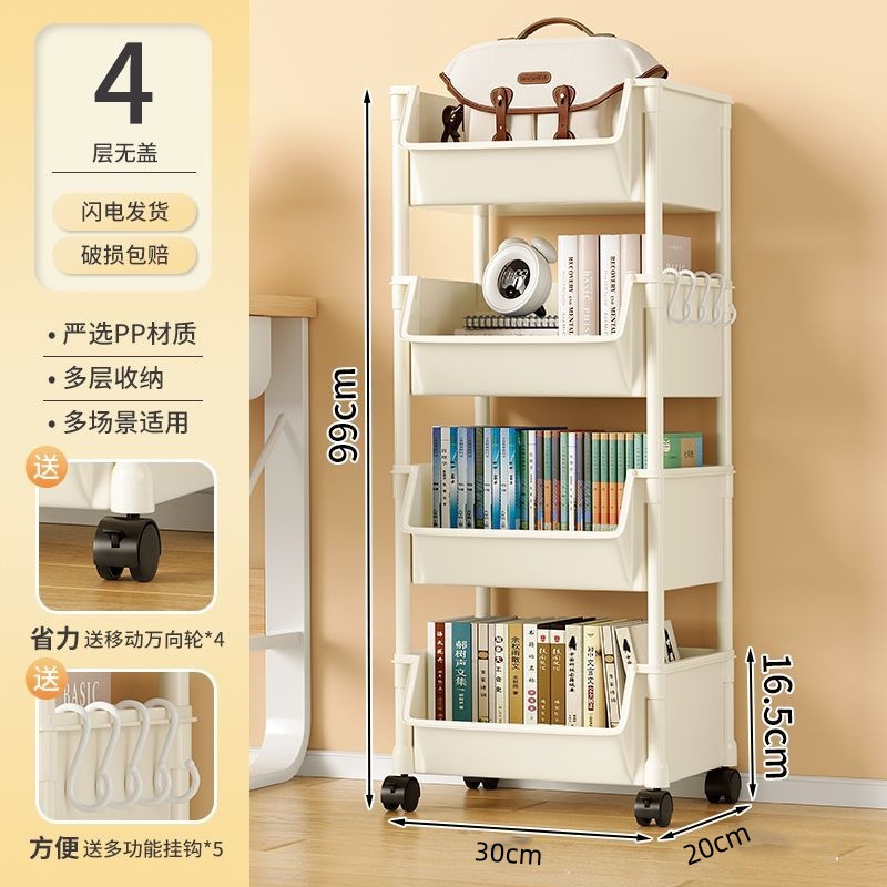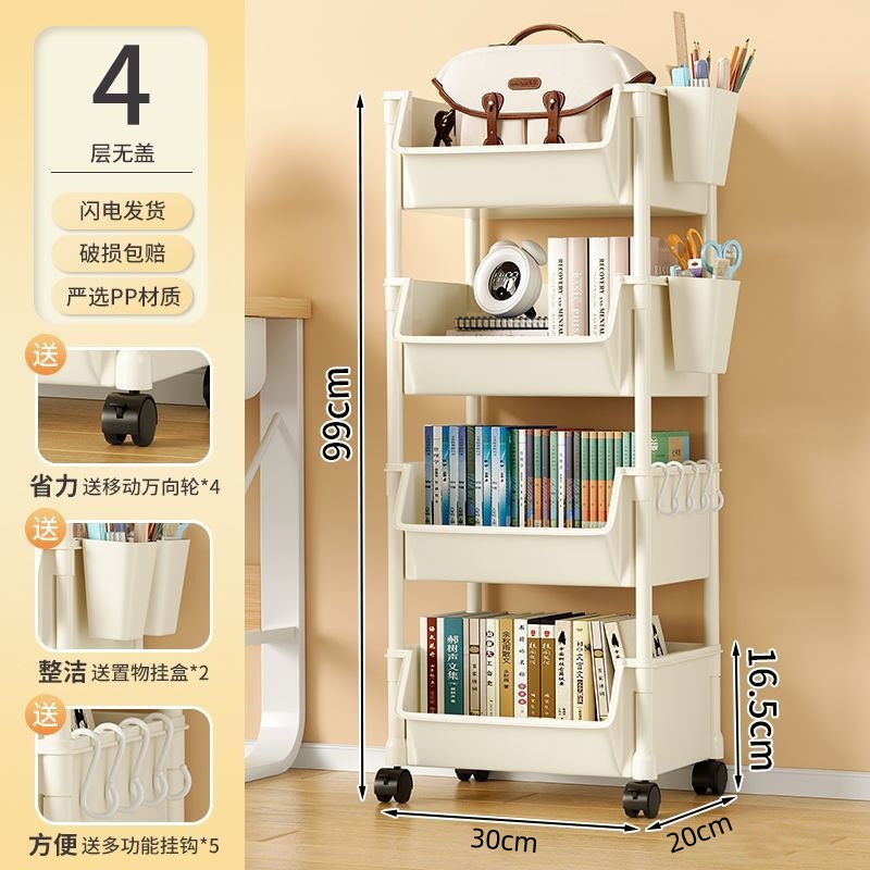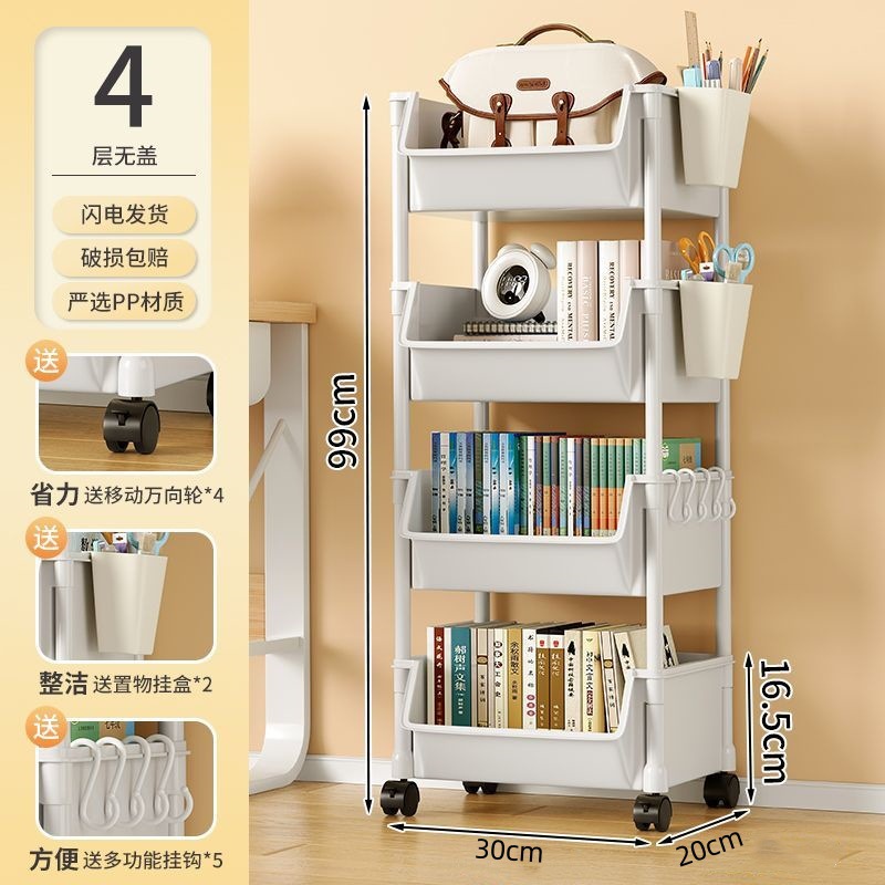 책장 수납 선반 가정용 다층 책상 옆 수납장 거실 간식 잡화 트롤리 다기능 회전형