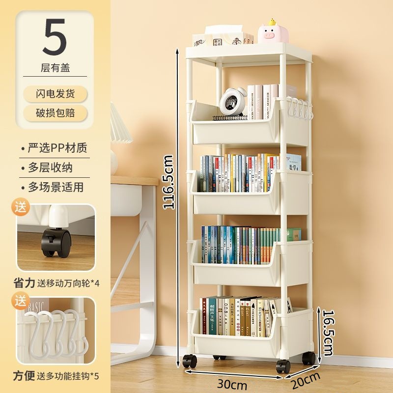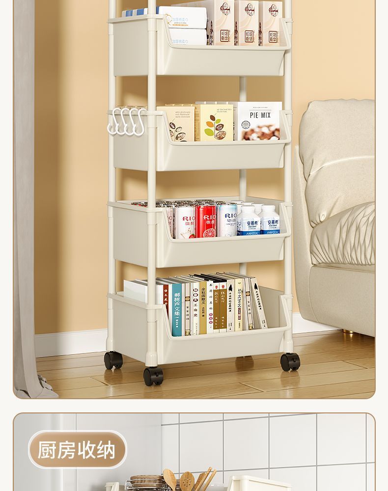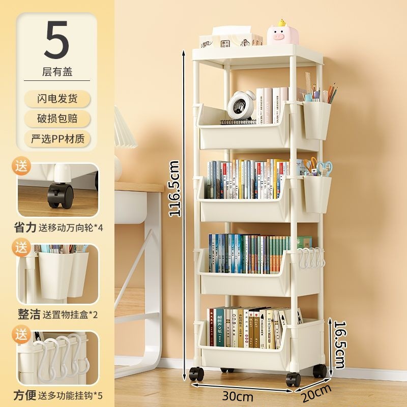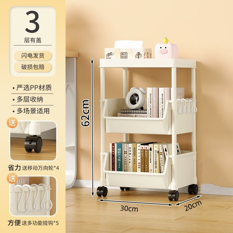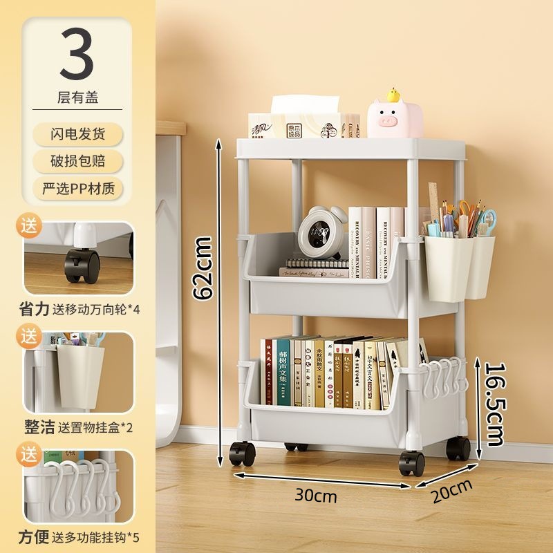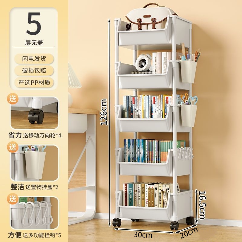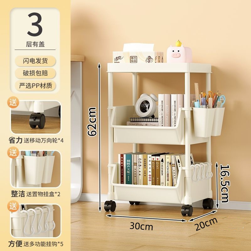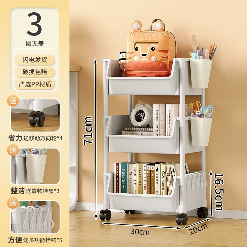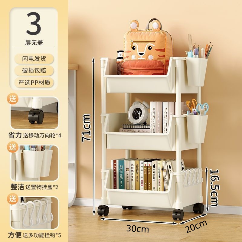 책장 수납 선반 가정용 다층 책상 옆 수납장 거실 간식 잡화 트롤리 다기능 회전형